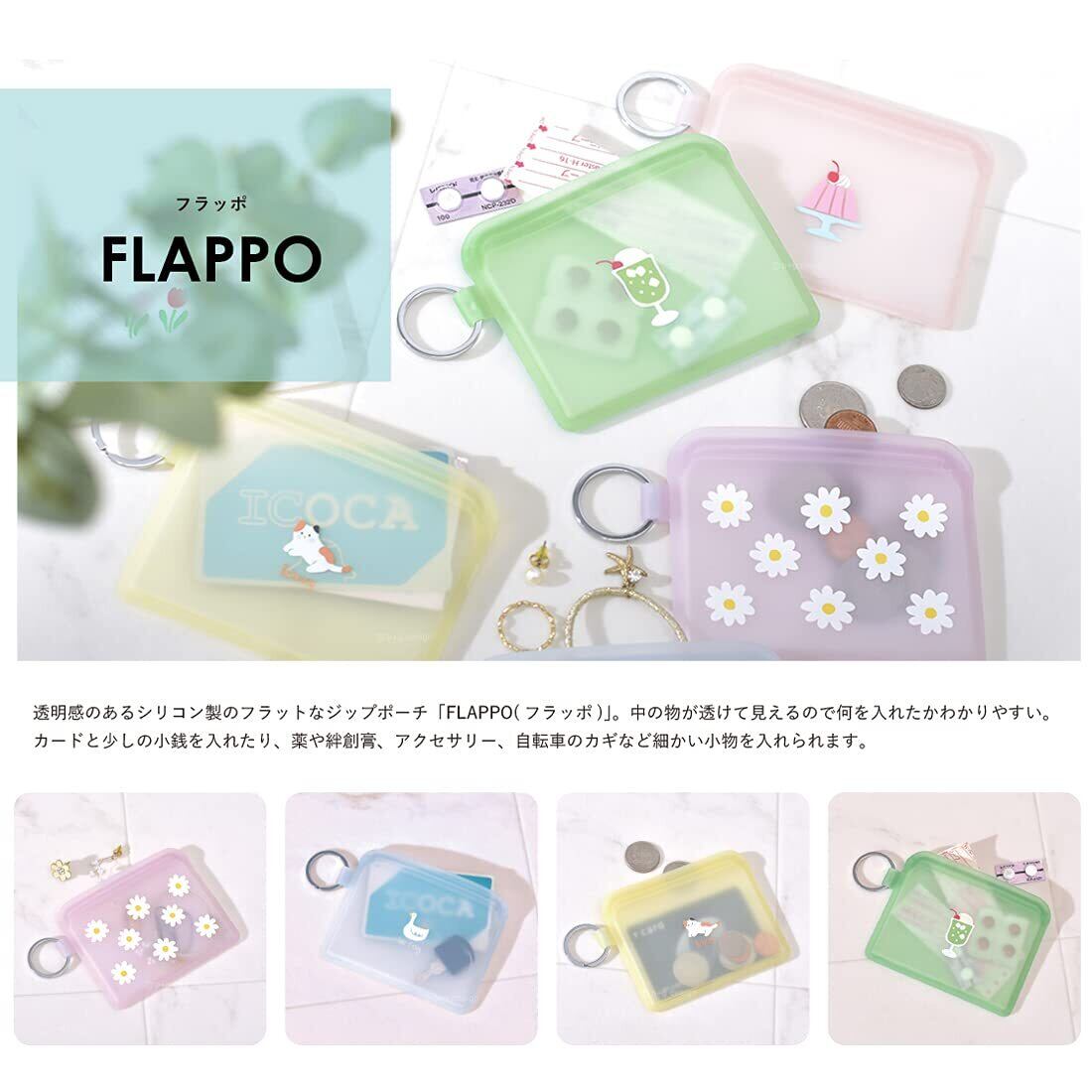透明感のあるシリコン製のフラットなジップポーチ。細かい小物入れに。