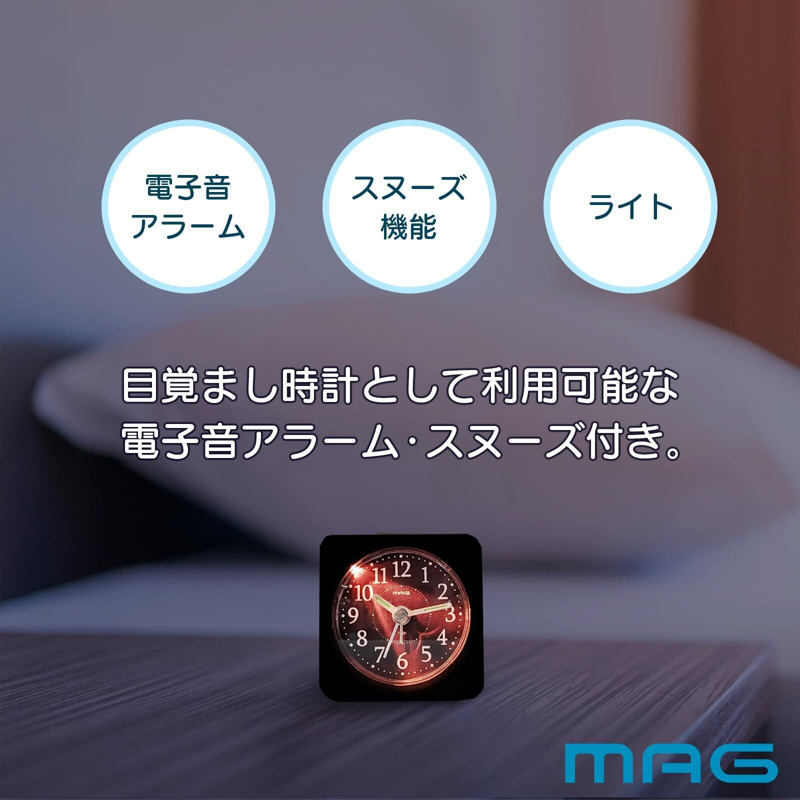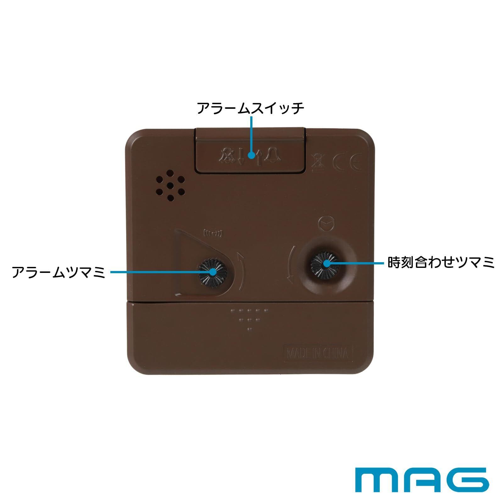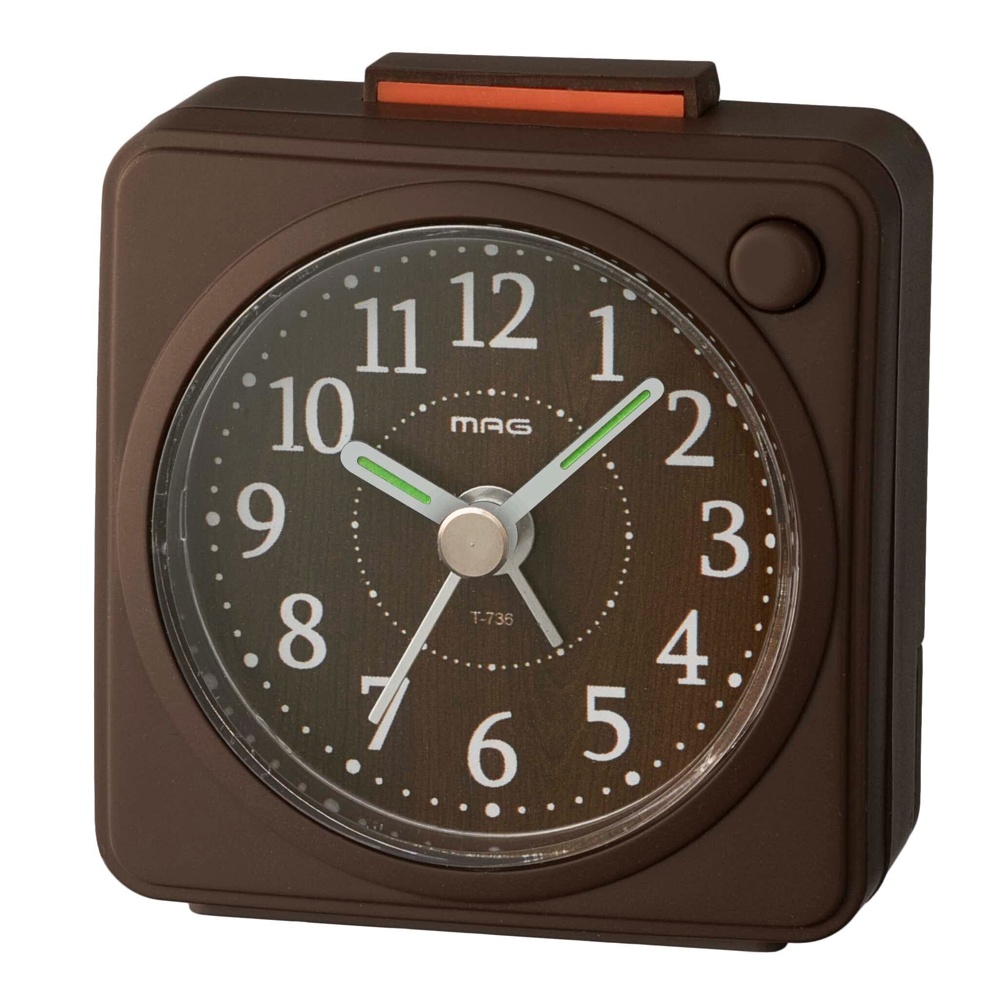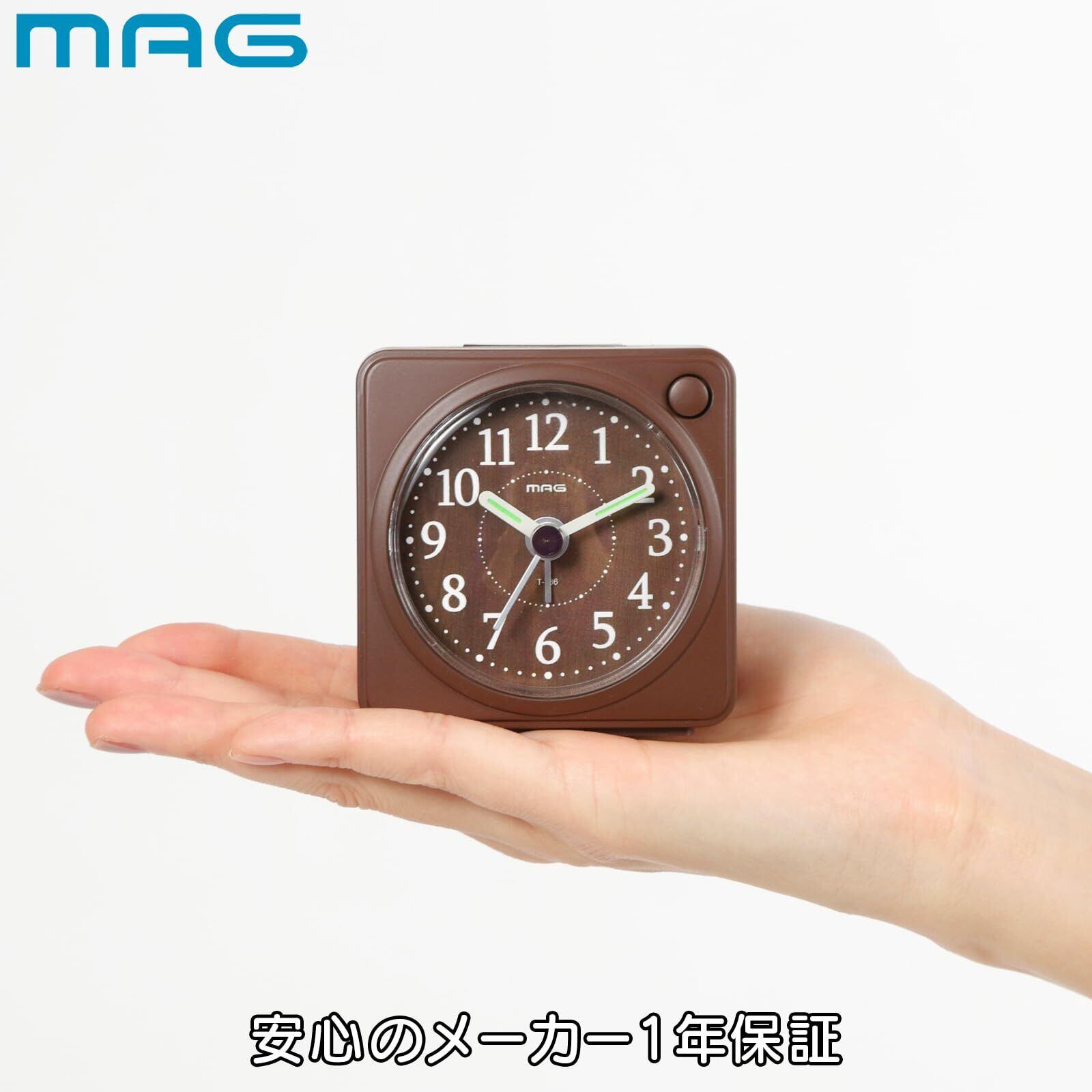 MAG(マグ) 目覚まし時計 置き時計 小型 小さい アナログ かわいい おしゃれ インテリア 静音 連続秒針 電子音 アラーム スヌーズ ライト ブラウン ミニモク T-736 BR-Z ノア精密