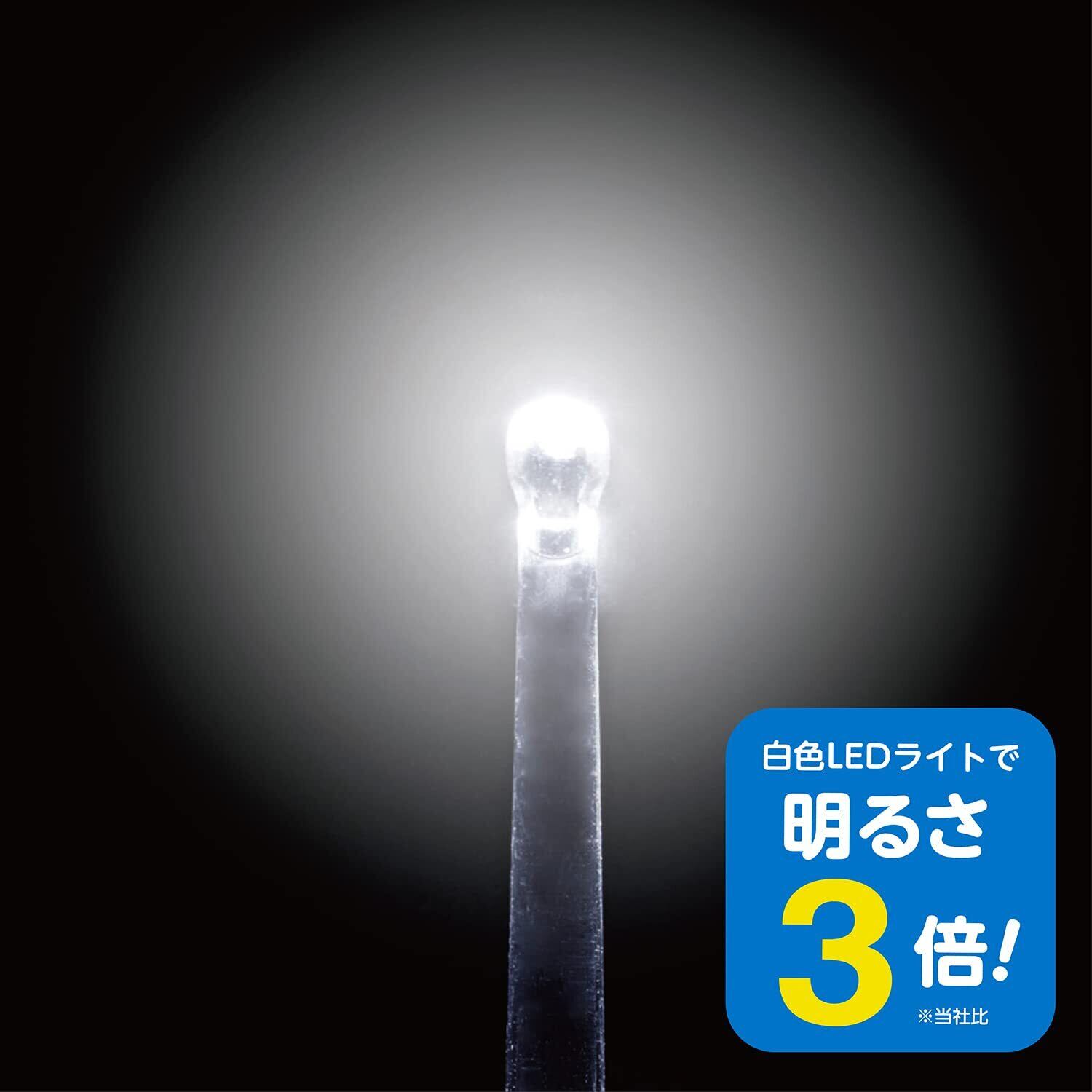 【明るいLEDライトを採用】採用しているのは、白色のLEDライトです。当社比で3倍もの明るさのあるものなので、暗い耳の中までしっかり見やすいよう作られています。