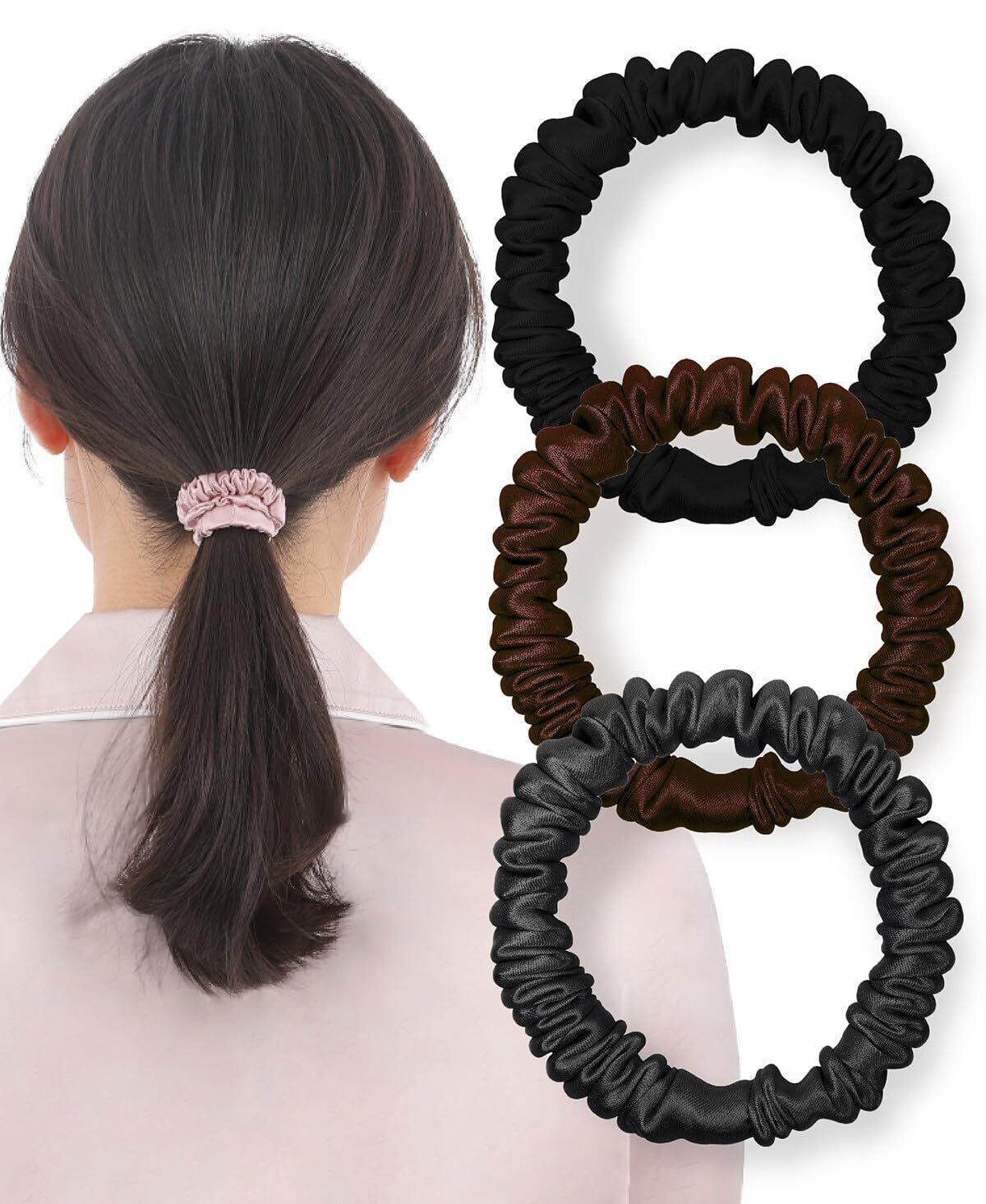 【ヘアケアのプロ監修】 シルク ヘアゴム シュシュ 髪ゴム シルクゴム 跡がつかない SILK100% おしゃれ 太め 3個セット (アソートA)