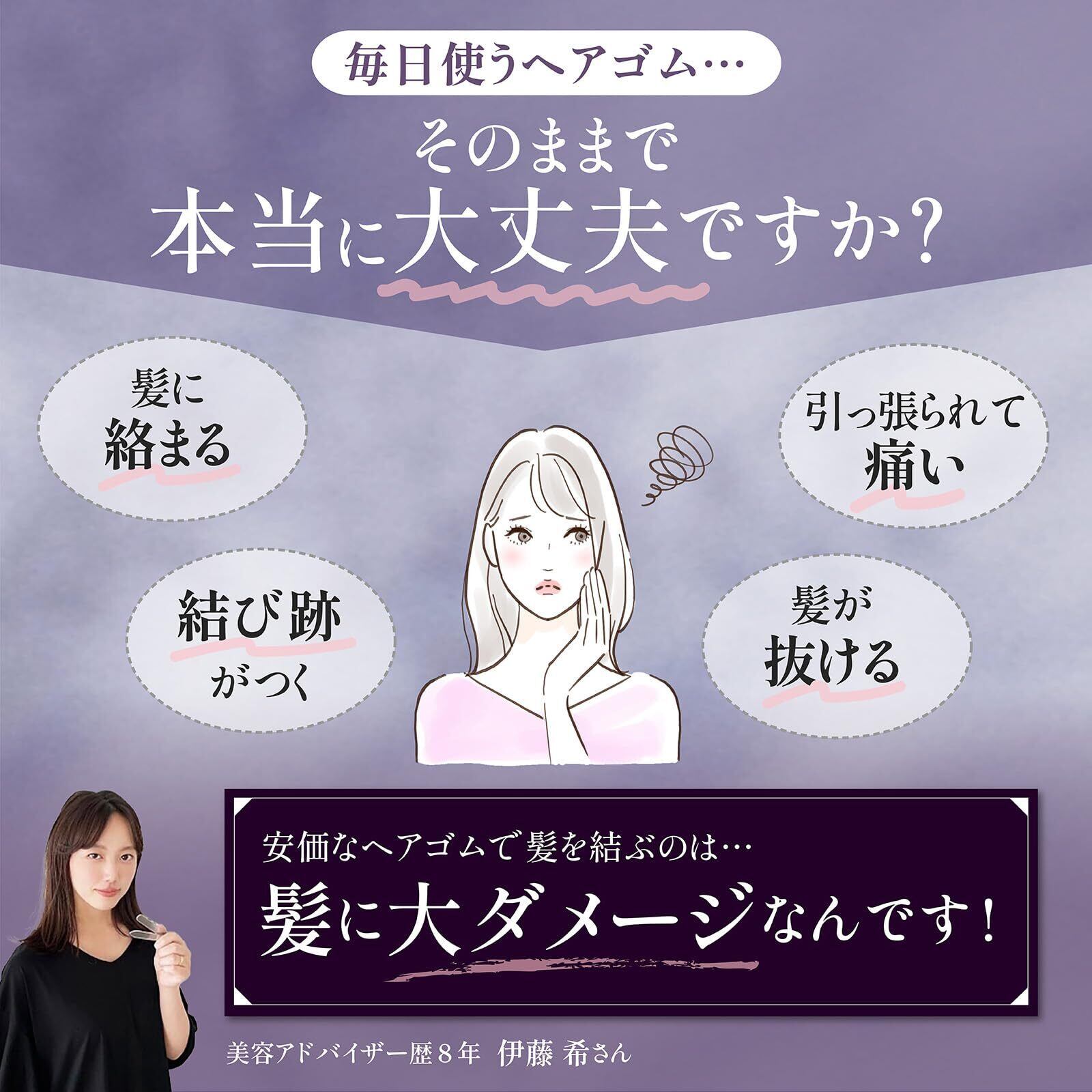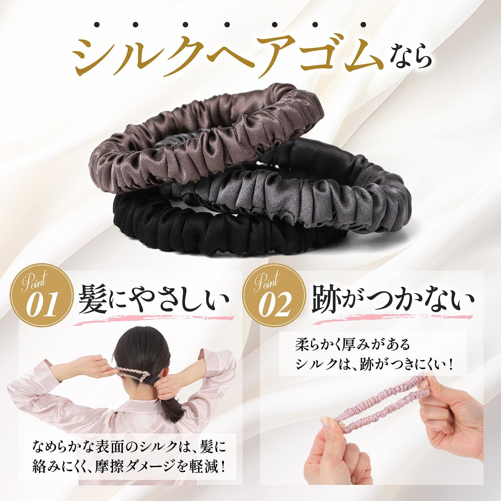【跡がつかない】SEAWINDのシルクヘアゴムは、厚みが1cm以上。シュシュのように締め付けが分散されるため、髪に跡がつきにくいのです。