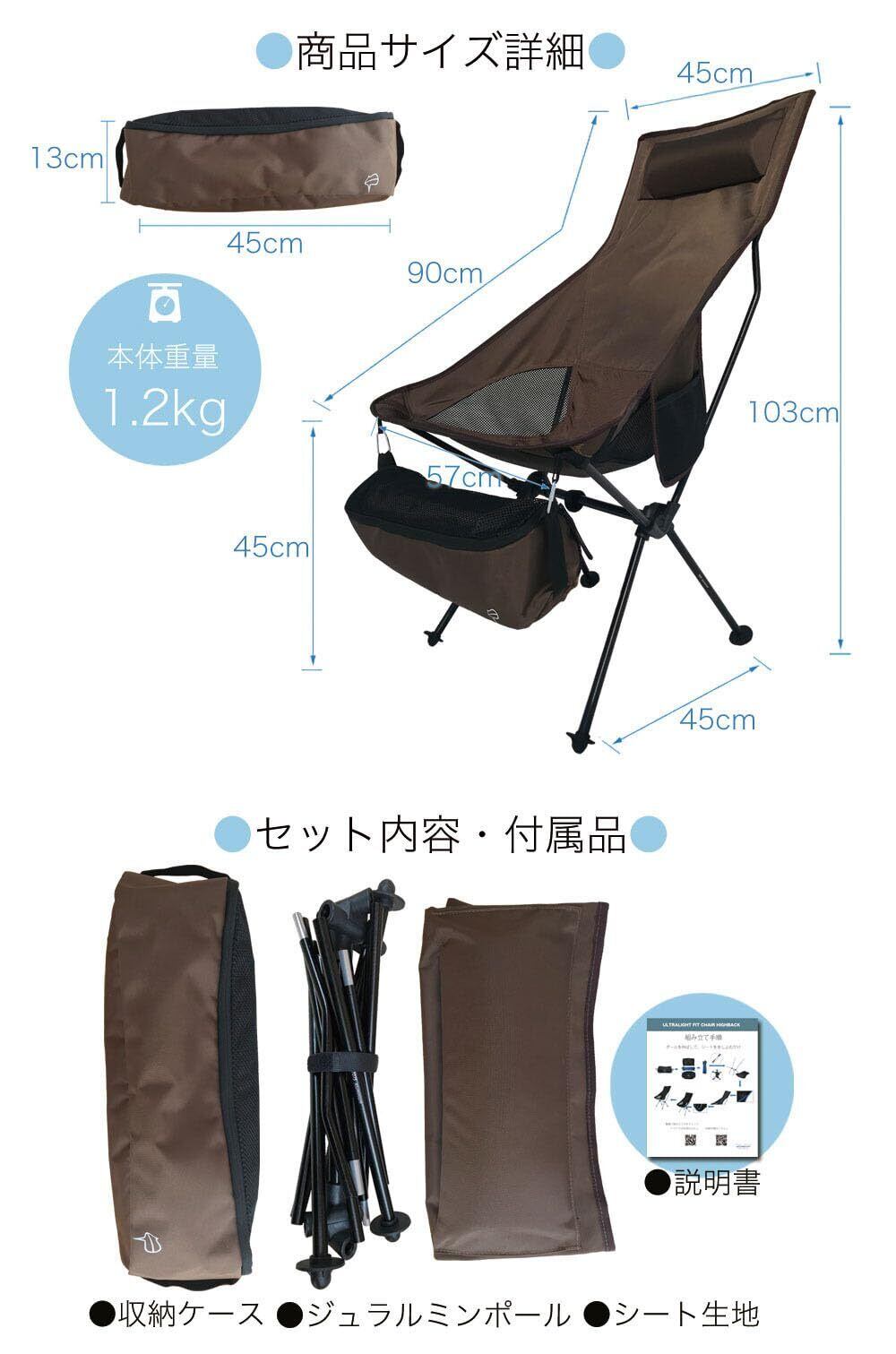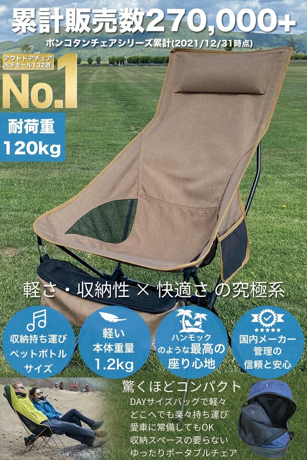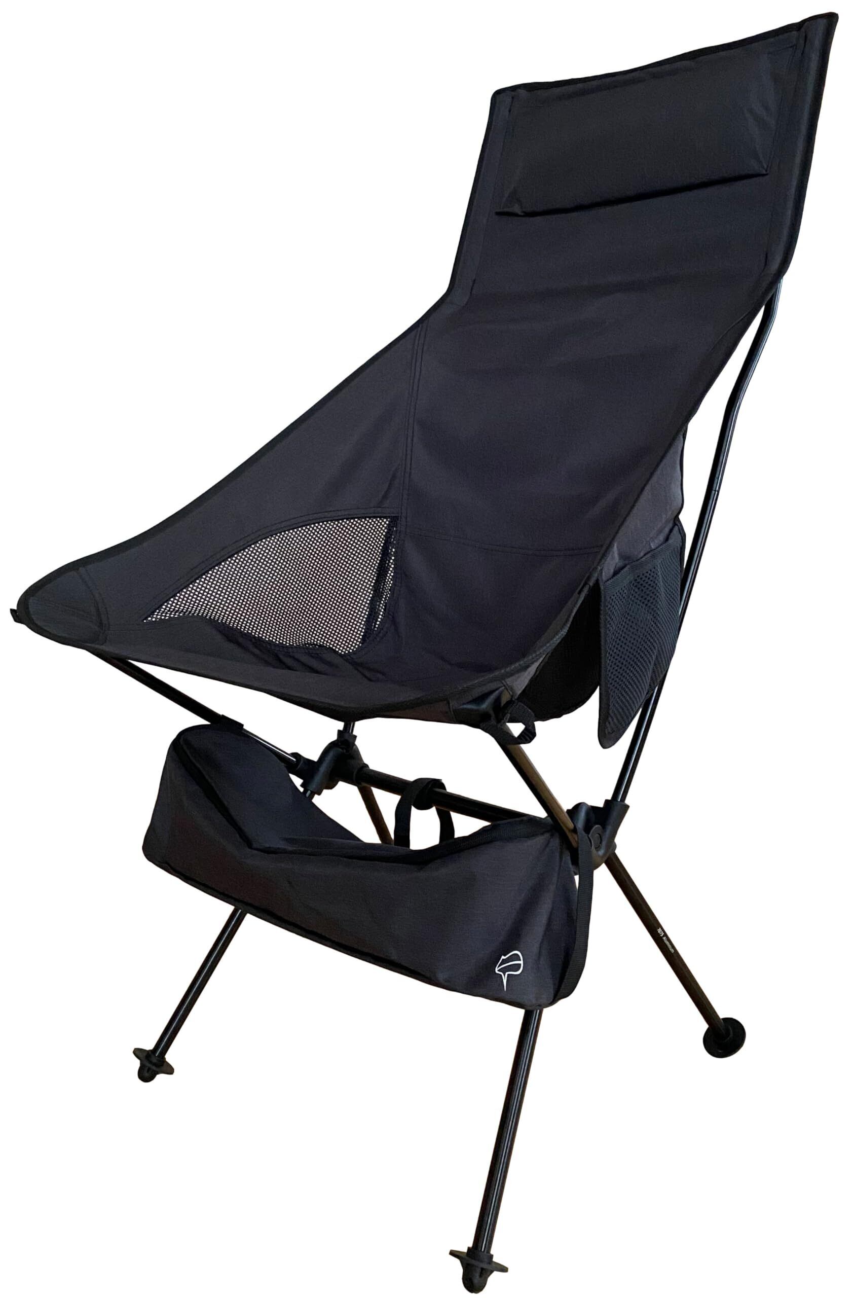 アウトドアチェア 【 軽さ・収納性 × 快適さの究極系 】 PONCOTAN ウルトラライトフィットチェア ハイバック 耐過重120kg 超軽量 1.2kg コンパクト 収納サイズ 45×13cm A7075超々ジュラルミン 室内OK 指1本で軽々運べる ゆったりキャンプチェア (チャコールブラック)