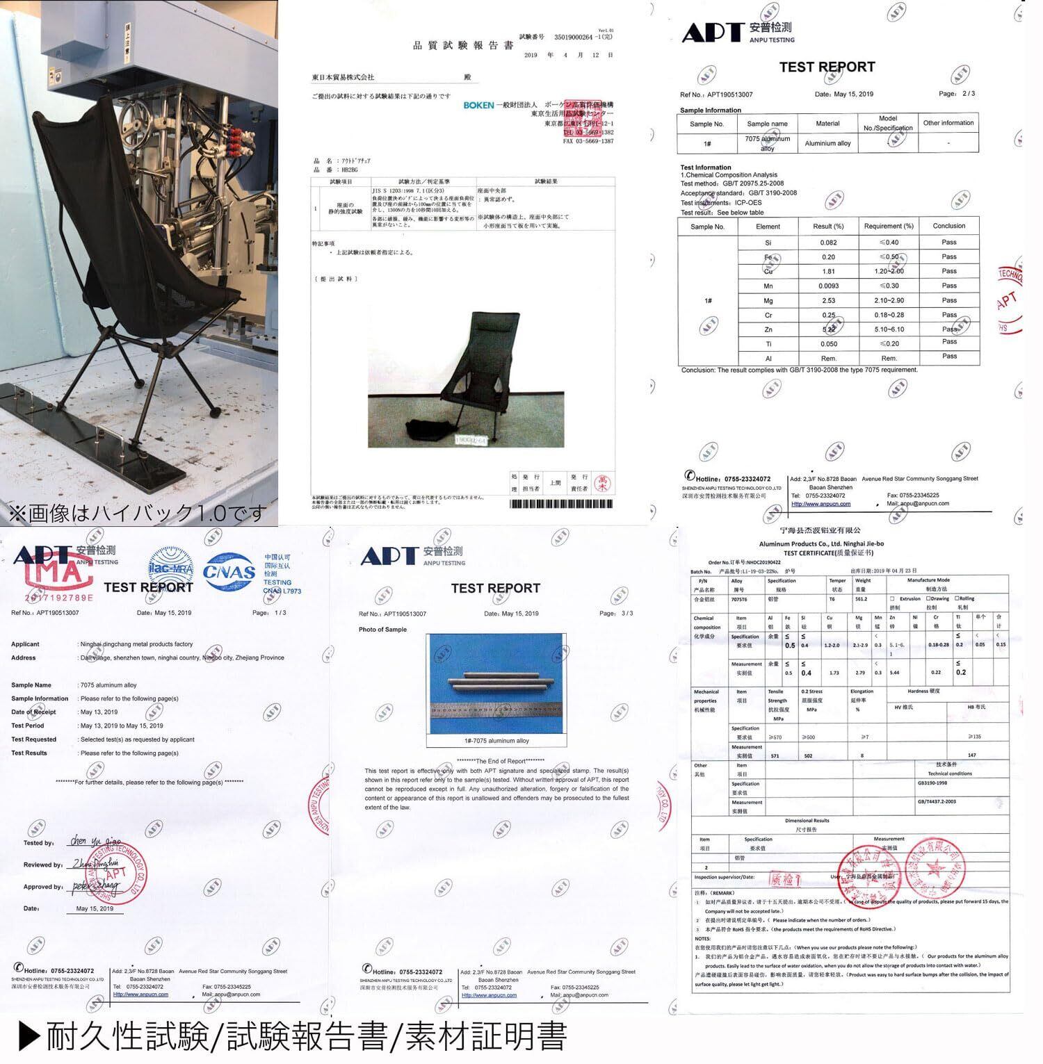 フレームは戦闘機等にも使用され、アルミ合金の中でも最高強度を誇る7075超々ジュラルミン製。指定提携工場にて、アルミニウムの品質を材料から徹底管理。日本国内、信頼の検査機関で安全試験を重ねました。 シート差し込み部の素材と縫製工程の見直しにより、強度・耐久性のUPにも成功。シート座面・フレーム・収納ケースまでも、より安心・快適な設計に改良済み。頭までしっかり支える、ハイバックタイプ。