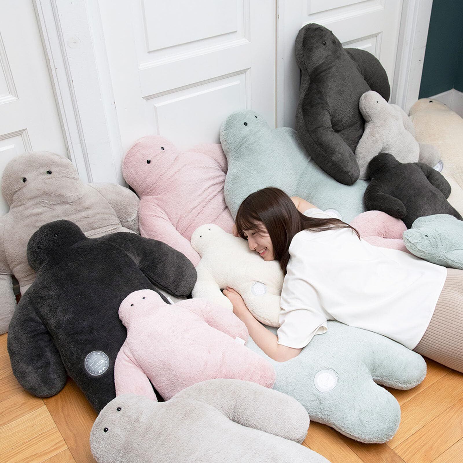 ふにゃふにゃのくたくたでちょっと頼りないけど、いつもそっと寄りそって やさしく包み込んでくれる人型クッション。 柔らかいのでいろんな体勢にフィットします。 程よいサイズ感で添い寝にもぴったりなサイズです。