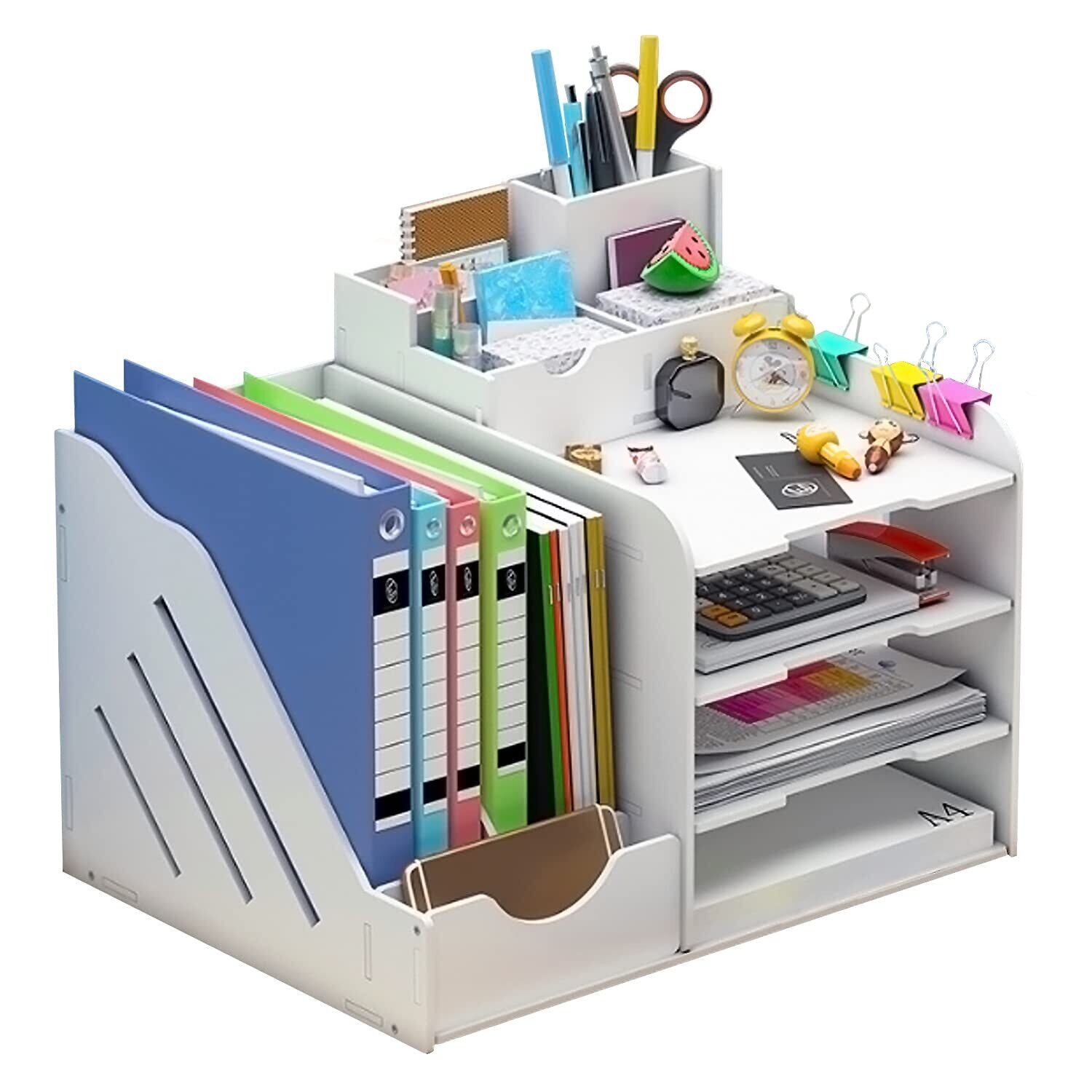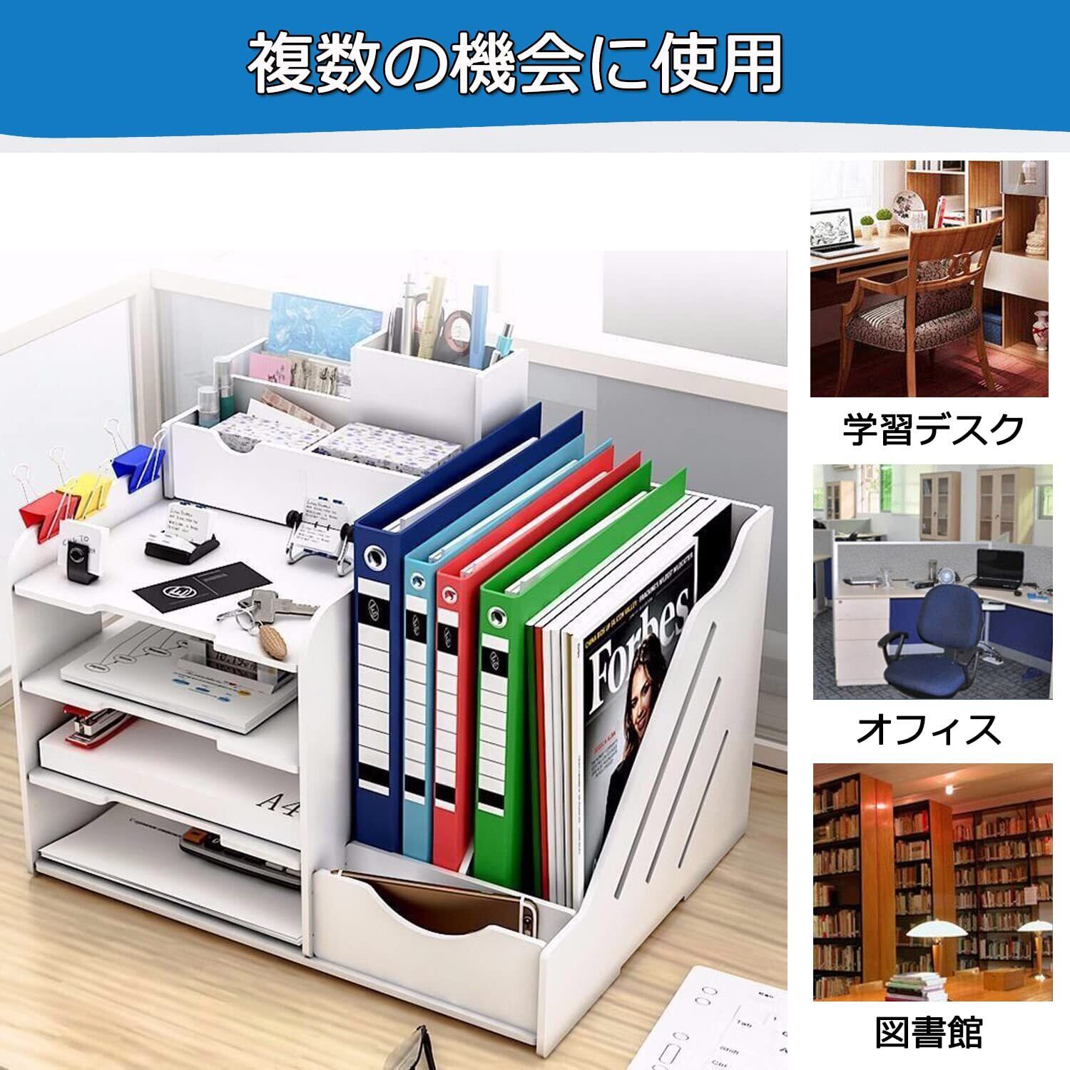 卓上収納ボックス デスク上置き棚 ファイルボックス 卓上収納ラック 大容量 オフィス収納 机上収納ボックス A4 対応 ペン入れ 組み立て簡単 仕切り A4フォルダー/新聞/雑誌/書類/事務用品/文具用品収納 机上用品 整理整頓