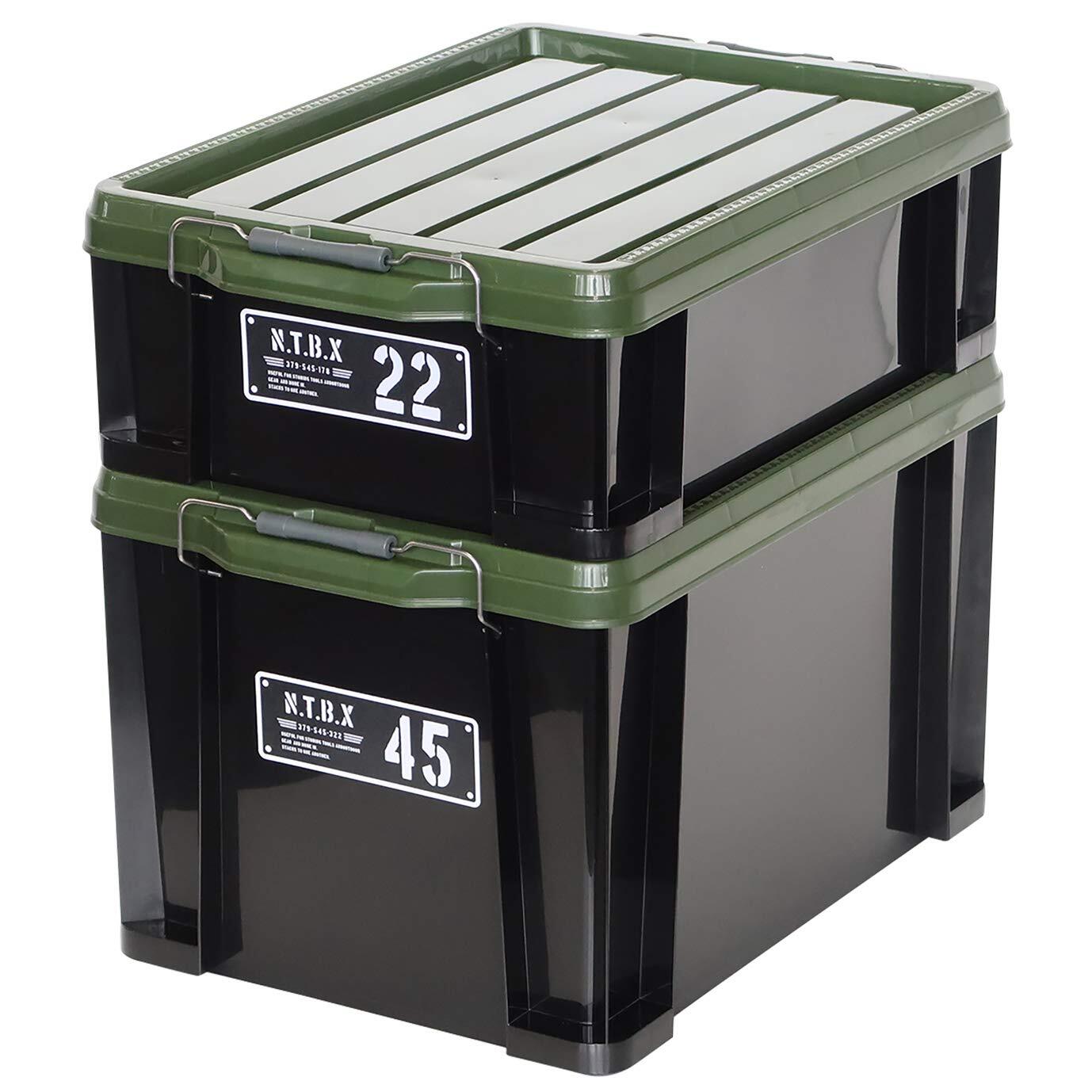 JEJアステージ(JEJ Astage) 収納ボックス [Xシリーズ NTボックス #45] ブラックグリーン 防災 幅38×奥行54.5×高さ32cm 日本製 積み重ね