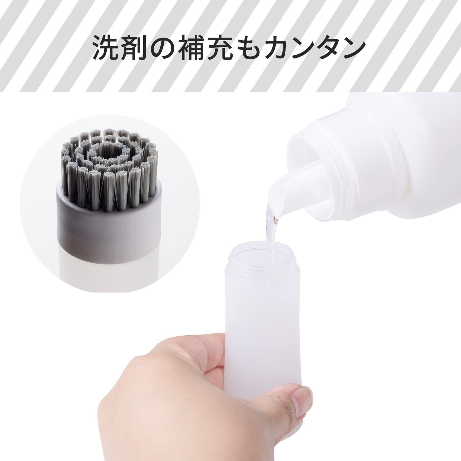 【ワンプッシュで扱いやすい】GOOD DESIGN賞受賞(※)。ワンプッシュで適量の洗剤が出る部分用洗濯ブラシ。中に洗剤を入れて、底のボタンを押すだけ。片手でも扱いやすい形です。(※2019年受賞)