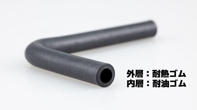 ●従来発売していた商品を完全リニューアル。狭いスペースでも有効なL字型のフューエルホース。素材から製造方法まで見直し、純正品に近い耐油性と耐候性に優れた商品にしました。内側に耐油ゴム、外側に耐熱ネオプレーンゴムを使用した2層構造。耐熱120℃/耐油100℃ クリップ付。