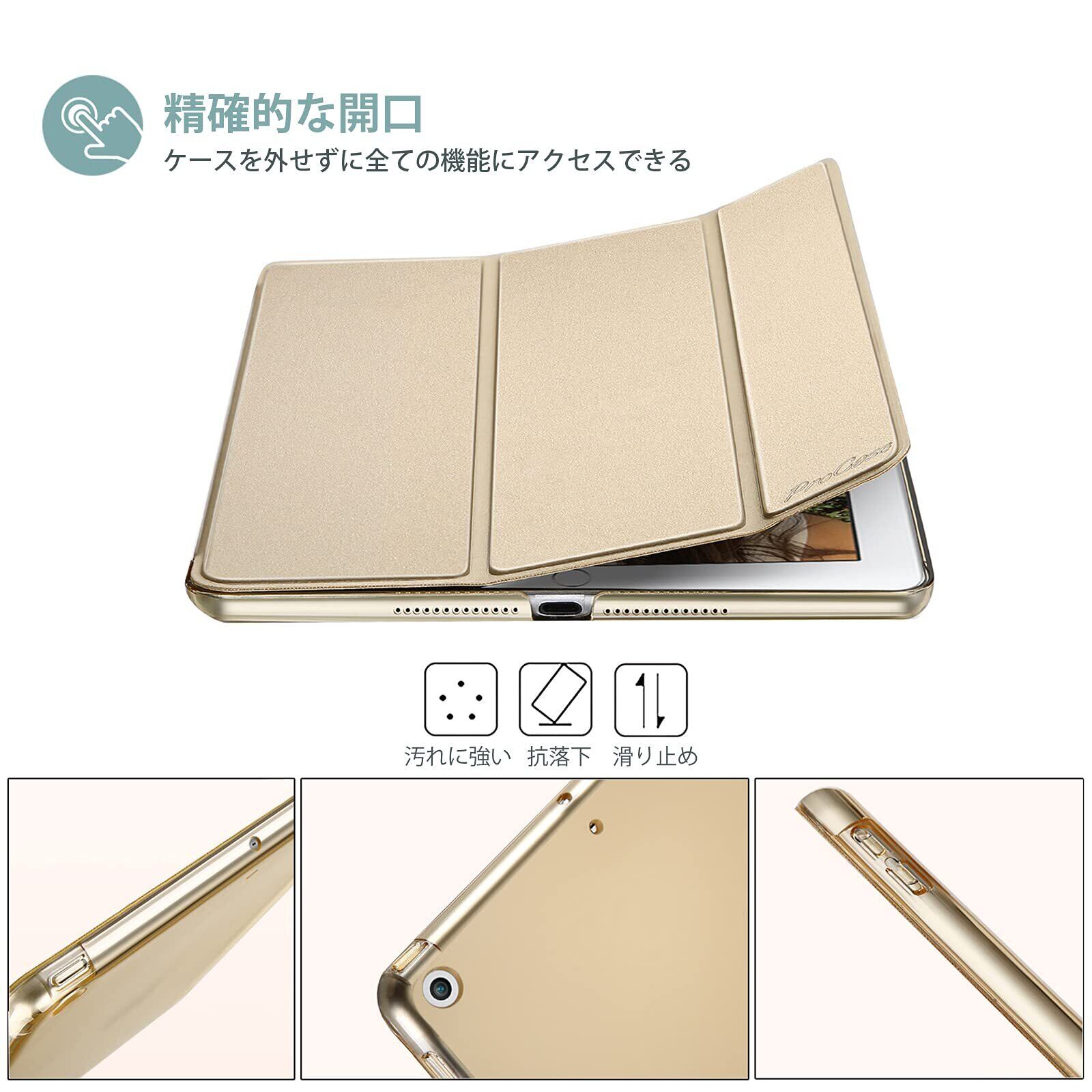 ProCase iPad 9.7"(旧型)ケース スマート 超スリム スタンド フォリオ保護ケース 半透明フロスト バックカバー 対応機種:iPad 9.7" 第6世代 2018 / 第5世代 2017 - ゴールド