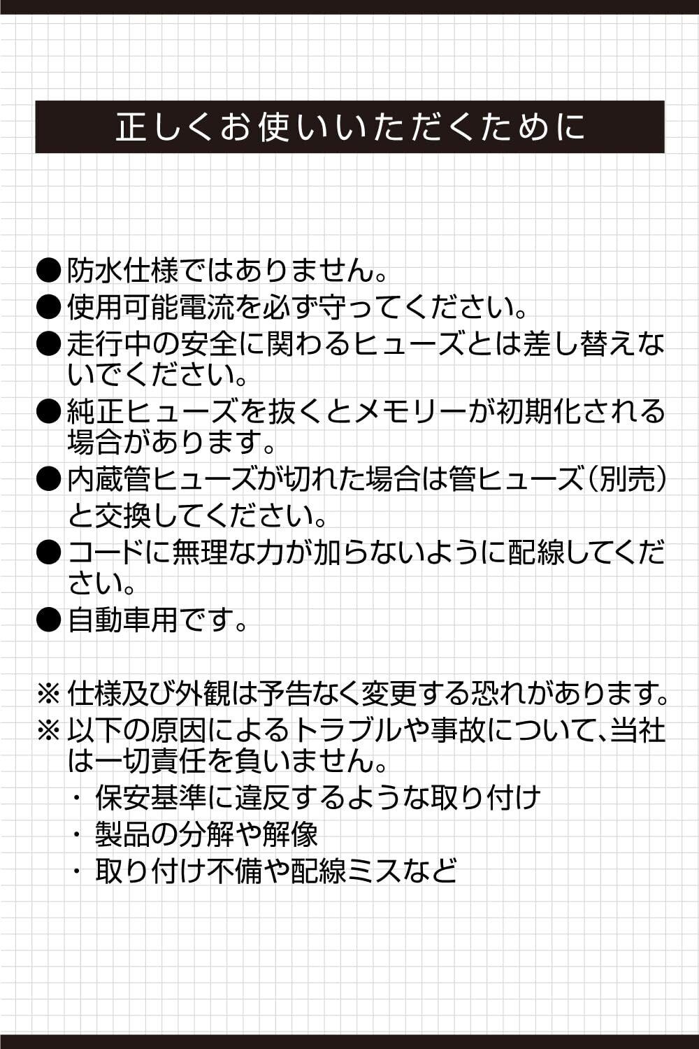 ●純正ヒューズを抜くとメモリーが初期化される場合があります。