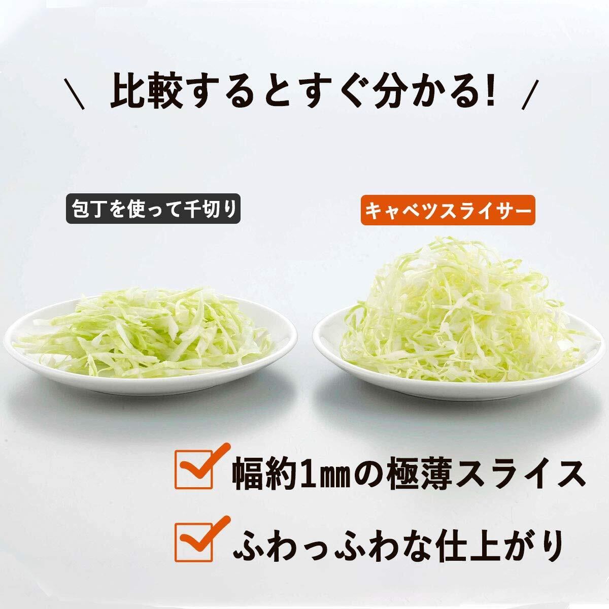 ● さまざまな料理に活躍! ● キャベツだけでなく、他の野菜や果物のスライスにも対応。サラダやお好み焼き、豚カツの付け合わせにも大活躍します。このスライサーを使えば、あなたの料理の幅が広がること間違いなしです。この機会に、ぜひ手に入れてみませんか?
