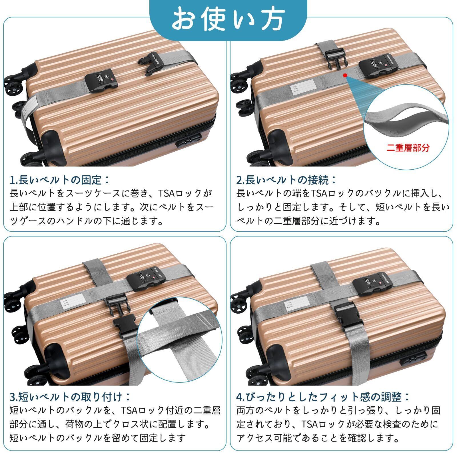 Travel Inspira【TSAロック】スーツケースベルト 十字型 旅行 便利グッズ 荷締めベルト バンド スーツケース 鍵 ツサ 荷崩れ防止・120~205センチ 調整可能 スーツケースベルト 鍵付き 3桁ダイヤル式 キャリーケース バンド 固定ベルト ずり落ち防止 旅行/出張に最適 グレー