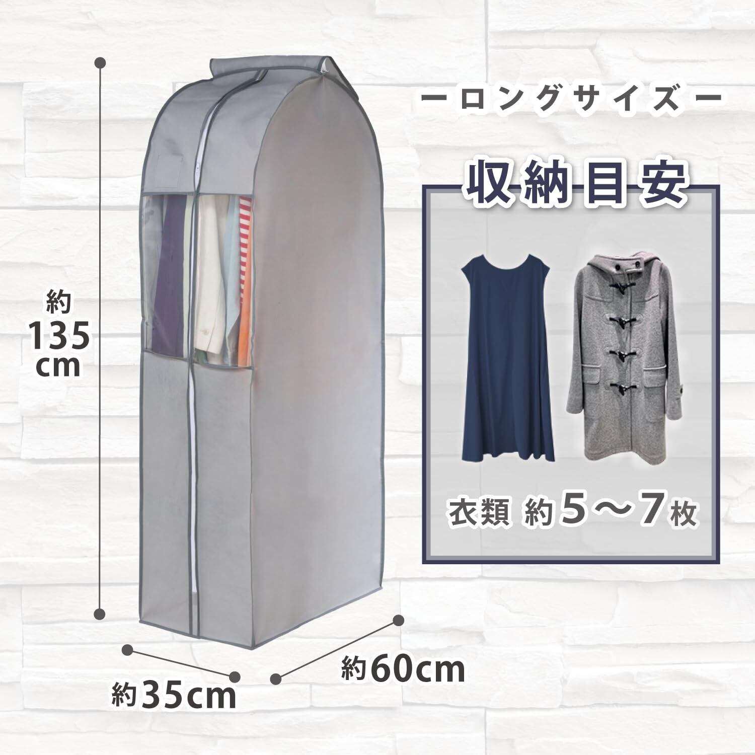 【衣類をまとめて保管】:オフシーズンの洋服をまとめてホコリなどの汚れから守ります。5~7枚までの衣類の保管が可能。
