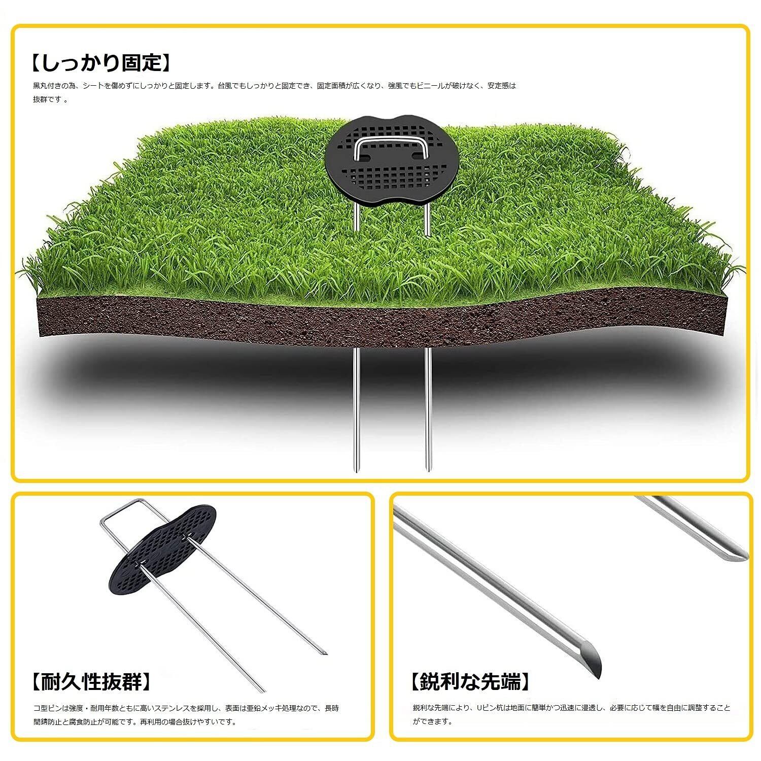 【広範囲な用途】防草シート、農業用防虫ネット、マルチ、灌水ホース、不織布、ビニールマルチ、各種シート・マット等の園芸用品をしっかり地面に固定させる押さえピンです。 ガーデニング・農業・庭用だけでなく、キャンプの時テントの固定ピンとしておすすめします 。