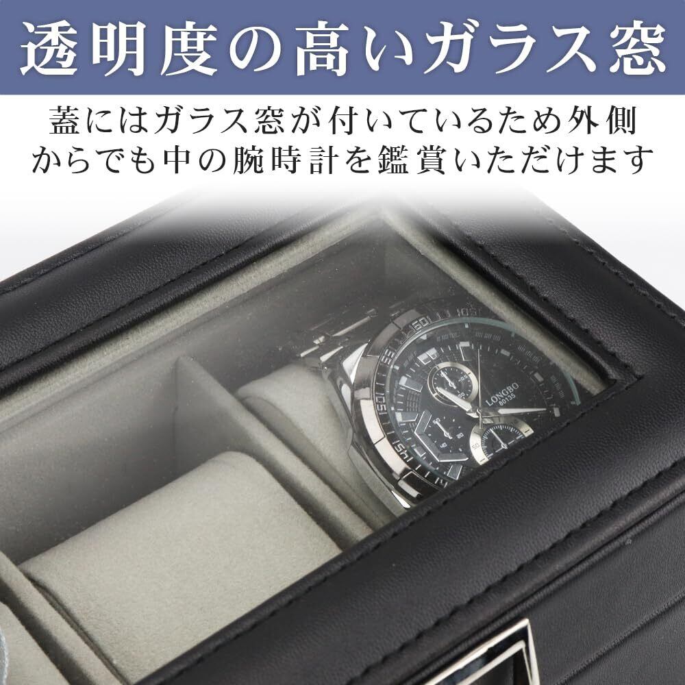腕時計コレクションケース 防汚 保管 プレゼント 耐久性 ロック機能 (ブラック 3本用)