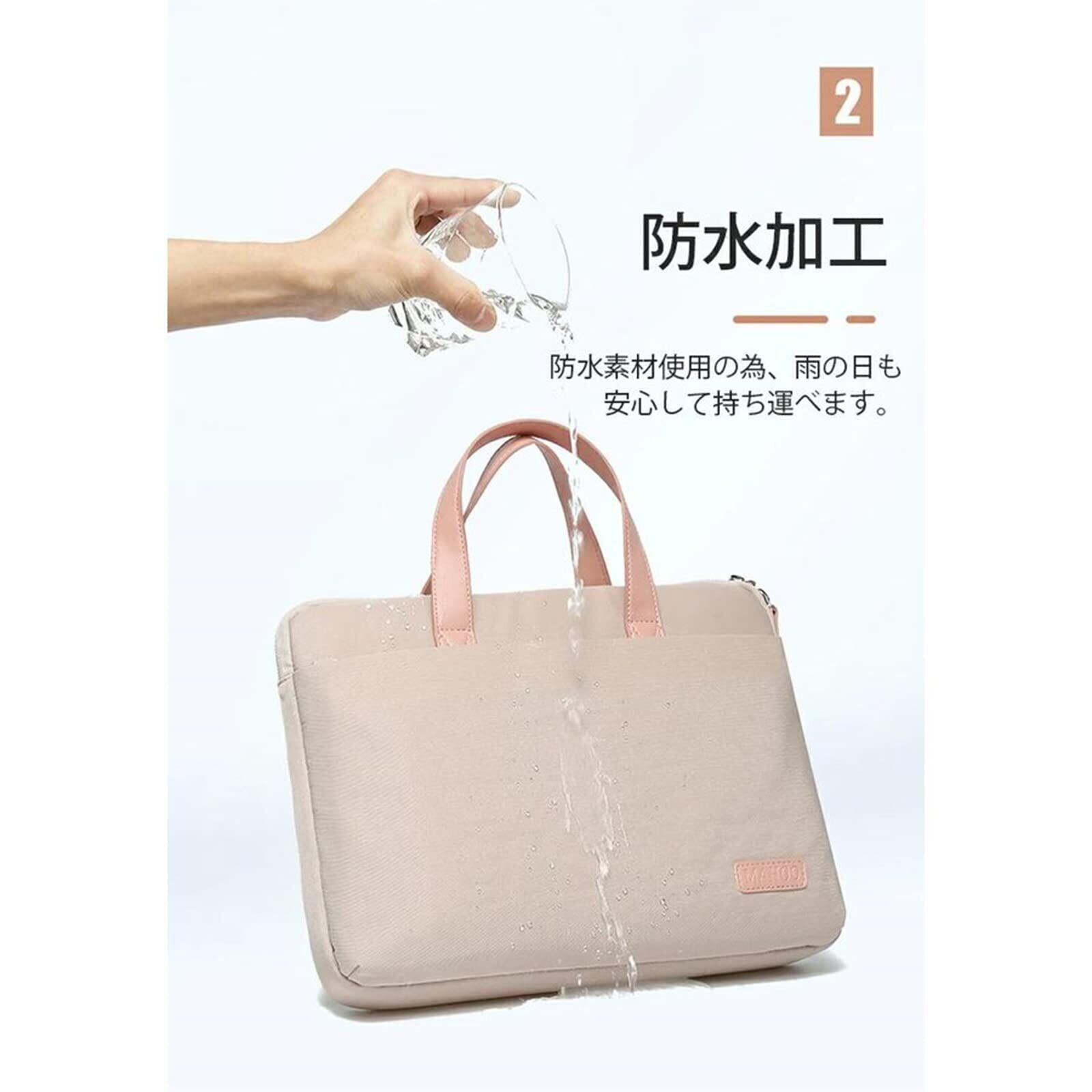 【軽量と便利】:取っ手が付いて持ち運びに便利なノートpcバッグ。背面に固定用の帯を付き、キャリーケースにも取り付け可能なので、旅行や出張にも便利です。
