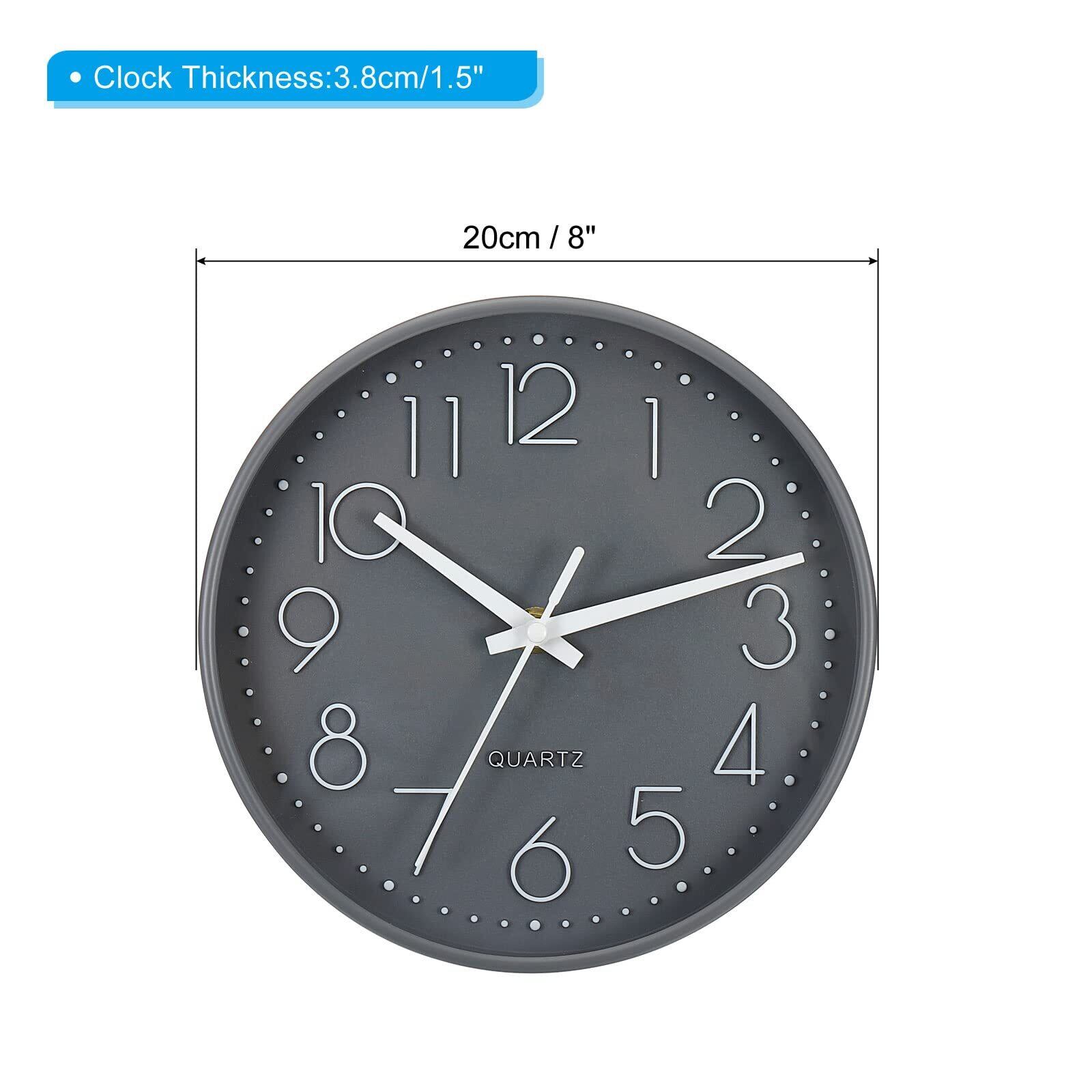 PATIKIL 20 cm ラウンド壁掛け時計 電池式サイレント 非カチカチ 掛け時計 オフィス 寝室 キッチン用 グレー