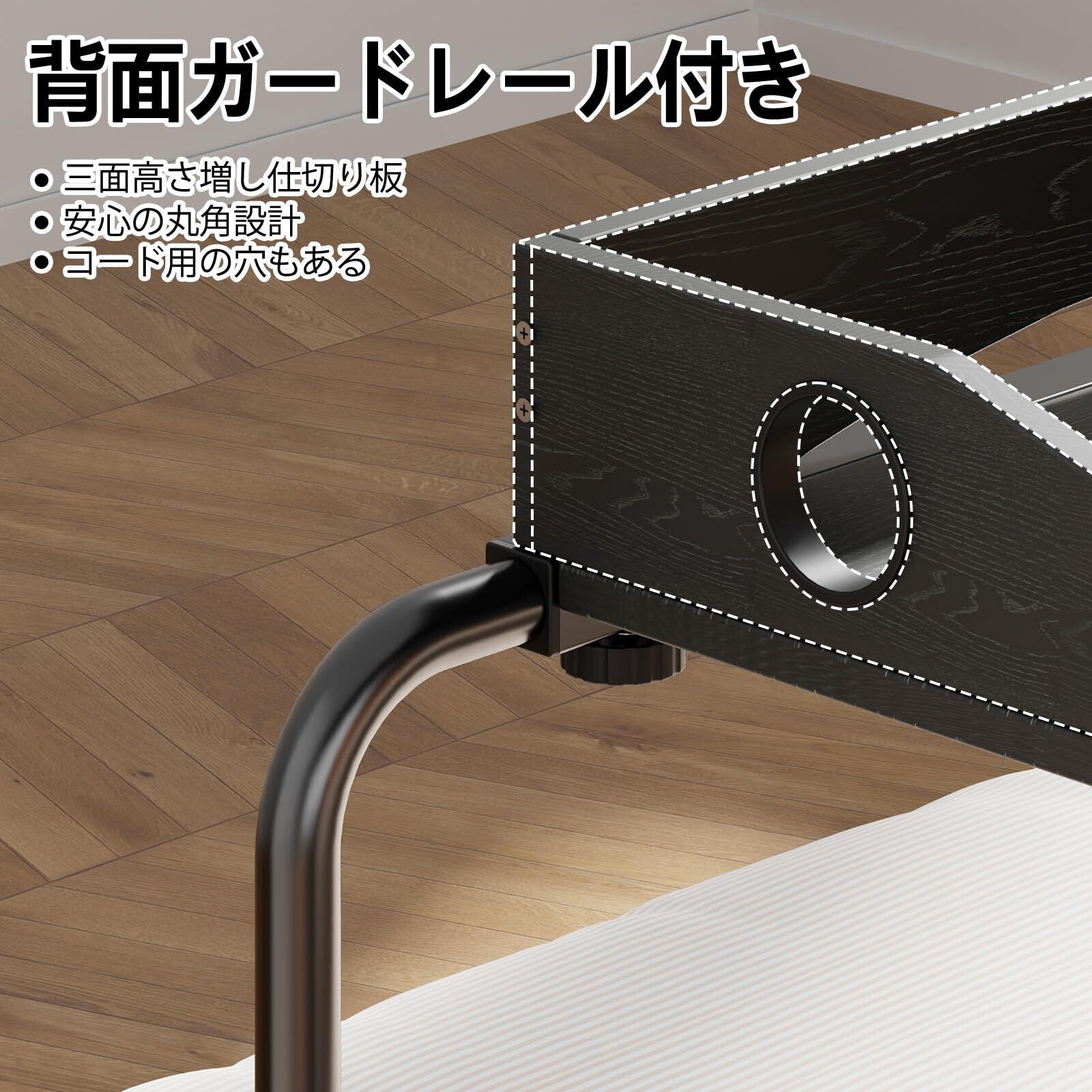 【背面ガードレール付き&コード用の穴もある】サイドテーブルの周りにはガードレールがあるので、物を置いて落ちてしまう心配はありません。また、側面にコード用の穴があるので、ケーブルが散乱するのを防ぎ、机の上をきれいに保ちます。