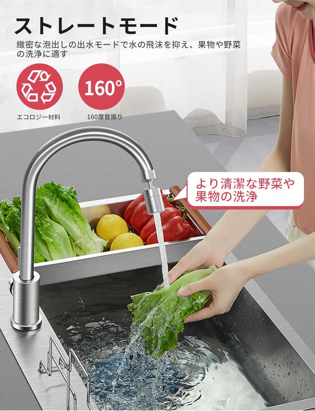 Mellbree 蛇口 シャワー キッチン 水道 シャワーヘッド 節水約40% 蛇口変換器 160度首ふり 360度回転 台所 洗面室 トイレ適用 簡単・安心取り付け(2出水モード)