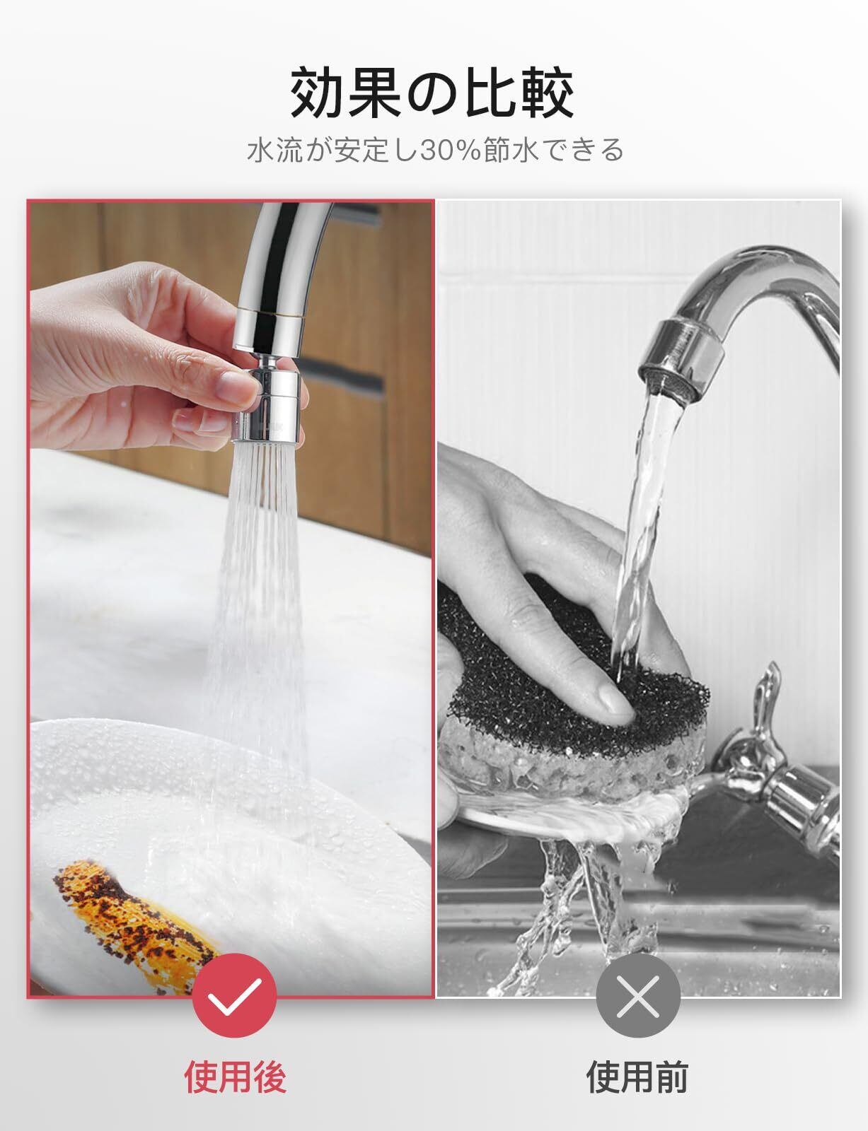 ● 節水効果抜群で環境にも優しい! ● 「Mellbree 蛇口 シャワー」は、最大で約40%の水を節約できる高効率な設計です。日常の水道使用を見直し、環境保護に寄与すると同時に、家計の負担も軽減できます。