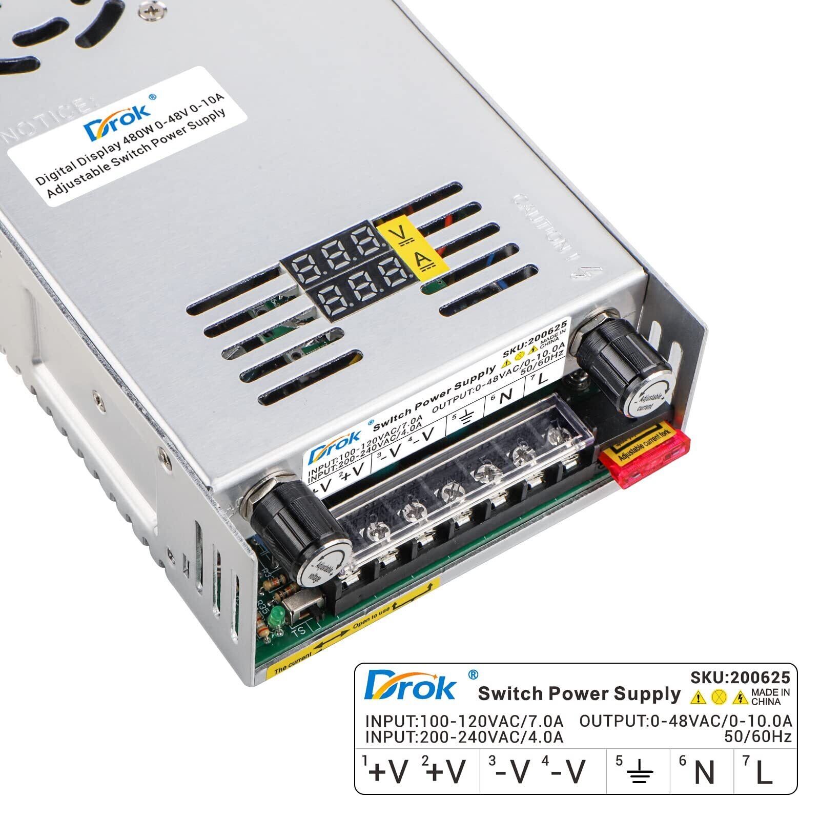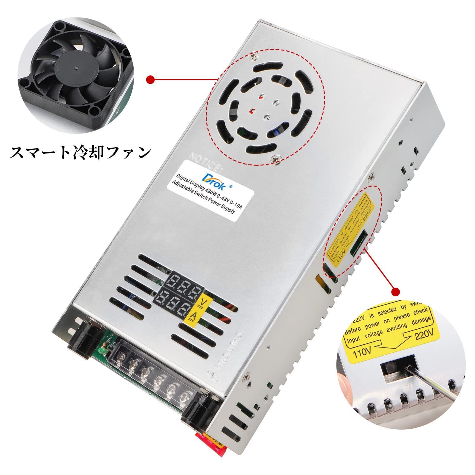 DROK スイッチング電源 AC 110/220V→DC 0-48V 0-10A 480W 電圧調整可能 安定化電源 直流電源変換器 過負荷電圧遮断 放熱ファン付き コンバーター