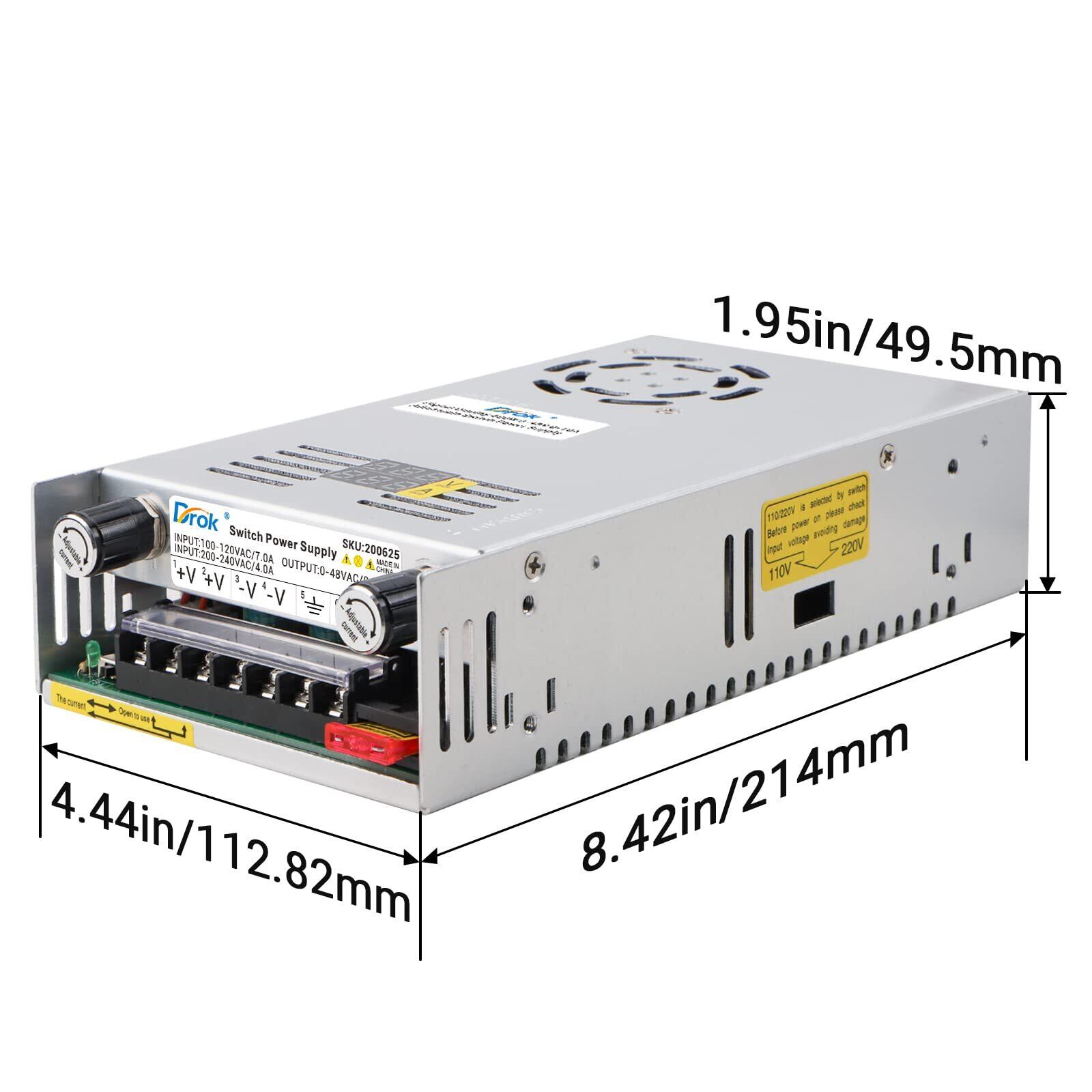 【DROKスイッチング電源】入力電圧範囲はAC110/220V±15%、出力電圧範囲はDC 0-48V調整可能、出力電流は0-10A調整可能であり、最大負荷は10Aです。したがって、この項目は10A以上の電流でデバイスに適合しません。