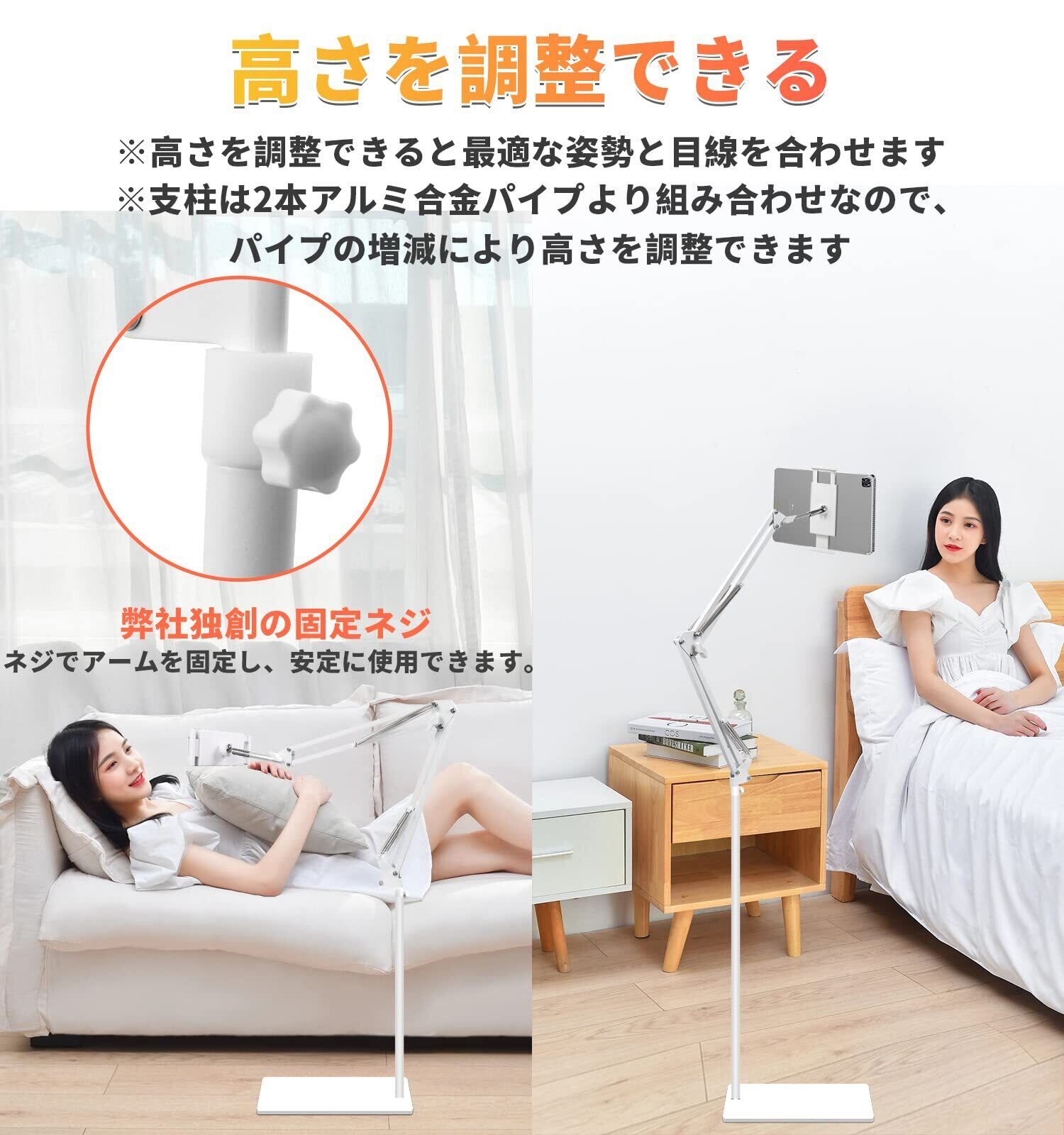 Munyday タブレット スタンド タブレット アーム スタンド 寝ながら 360度回転 高さ調節 折り畳み式 フレキシブルアーム 根元強化 下垂防止 スマホ スタンド 4.5〜12.9インチ for iPad Pro 、iPad 、Kindle Fire 、N-Switch、android surface、iPhone X多機種対応 (ホワイト)【日本語取扱説明書】