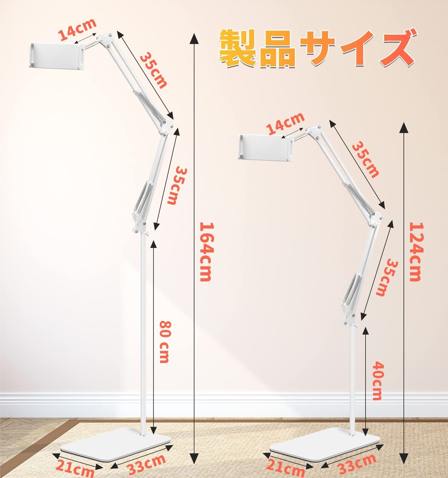 【高さ調整・自由移動・様々場合に大活躍】支柱は2段式のパイプにより組み合わせなのでパイプ増減により高さを調整できます。どうな身長の方でも最適な目線を合わせます。特に全身自撮りや、生放送に最適です。本体重は2.6kgだけ、楽に移動できます。オフィス、寝室、キッチン、バスルームなどいろいろな場所に適用。日常映画鑑賞がもちろん、エクササイズ、店頭、展示会ブース、受付の案内などに幅広くお使いいただけます。