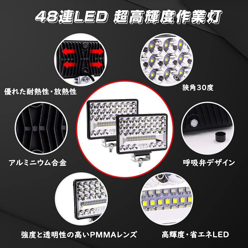 X-STYLE 144W LEDワークライト 作業灯 防水 5インチ 48連LED 白 車外灯 デッキライト 農業機械 DC 12V/24V兼用 高輝度 長寿命 トラック/建築機械/作業車 汎用 ホワイト 2個セット