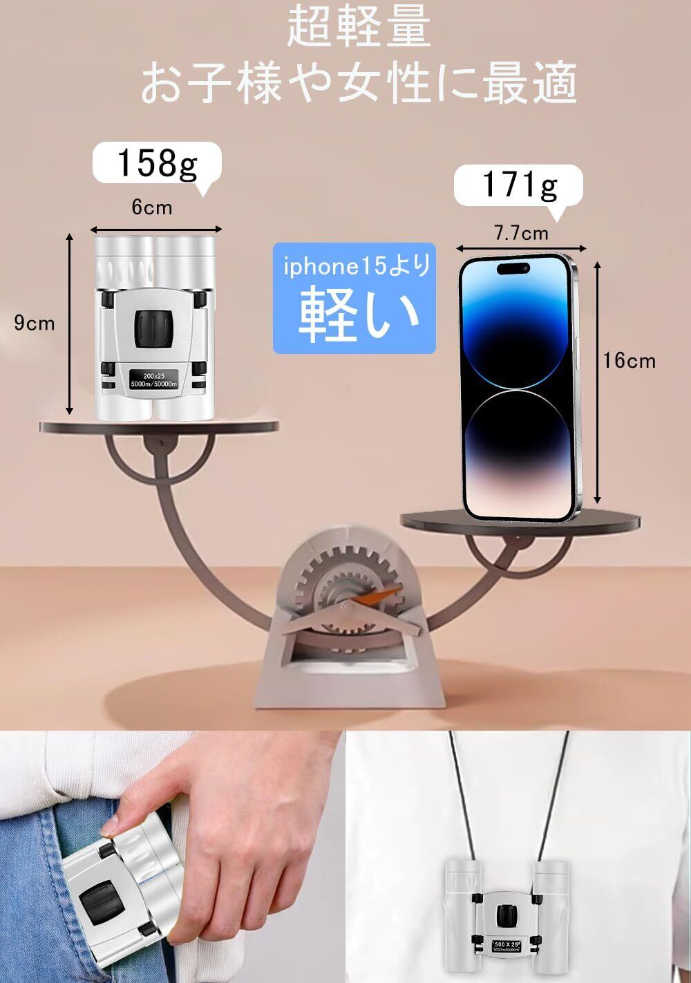 【コンパクトな構造は片手で操作できる】この小型望遠鏡はデザインが小さく、片手で持ちやすく、重さは158グラムで、手持ちはiPhone15より軽くて、長時間使っても疲れません。 女性の手のひらにのるコンパクトサイズです。ポケットに入るくらい小さくて。超軽量·お子様や女性に最適。