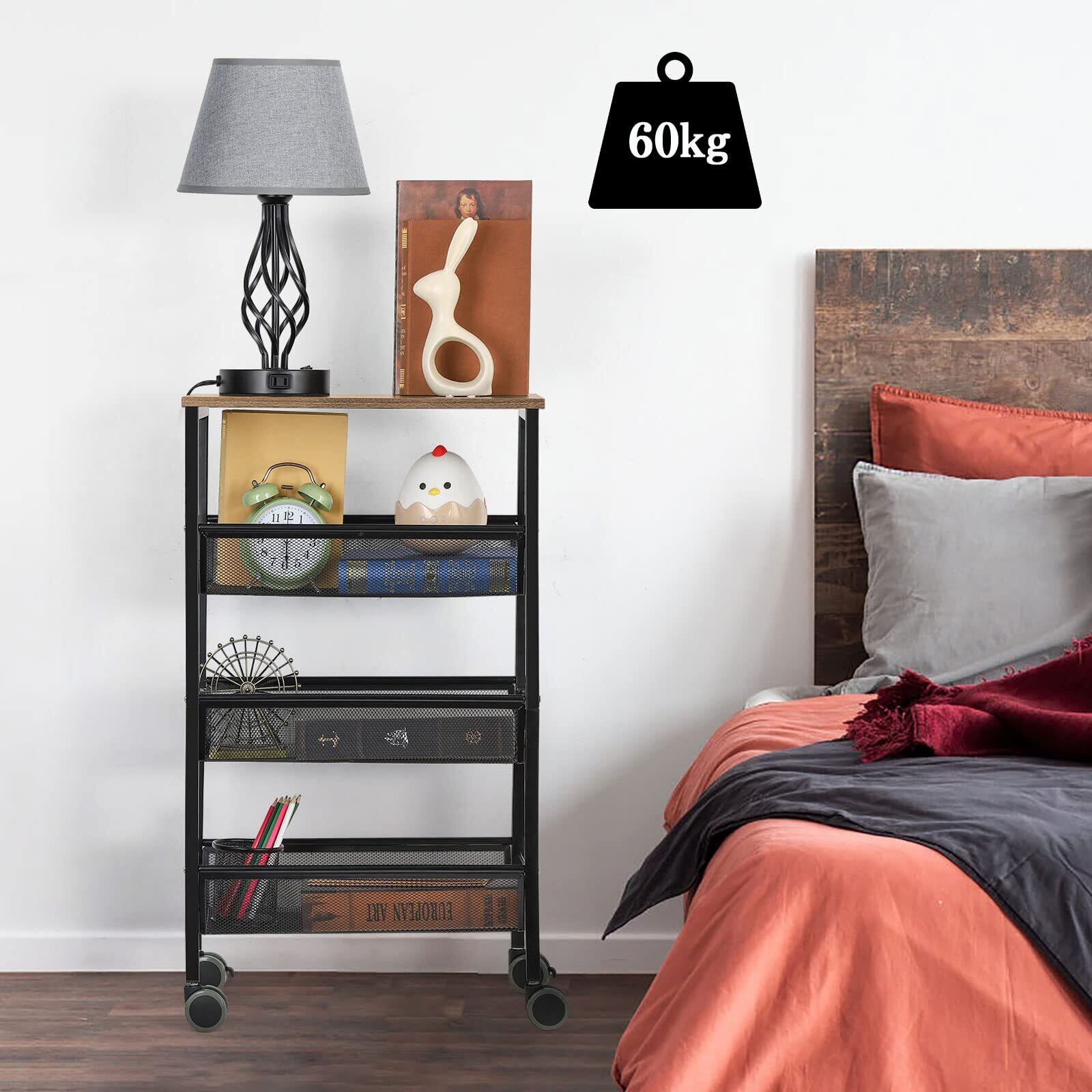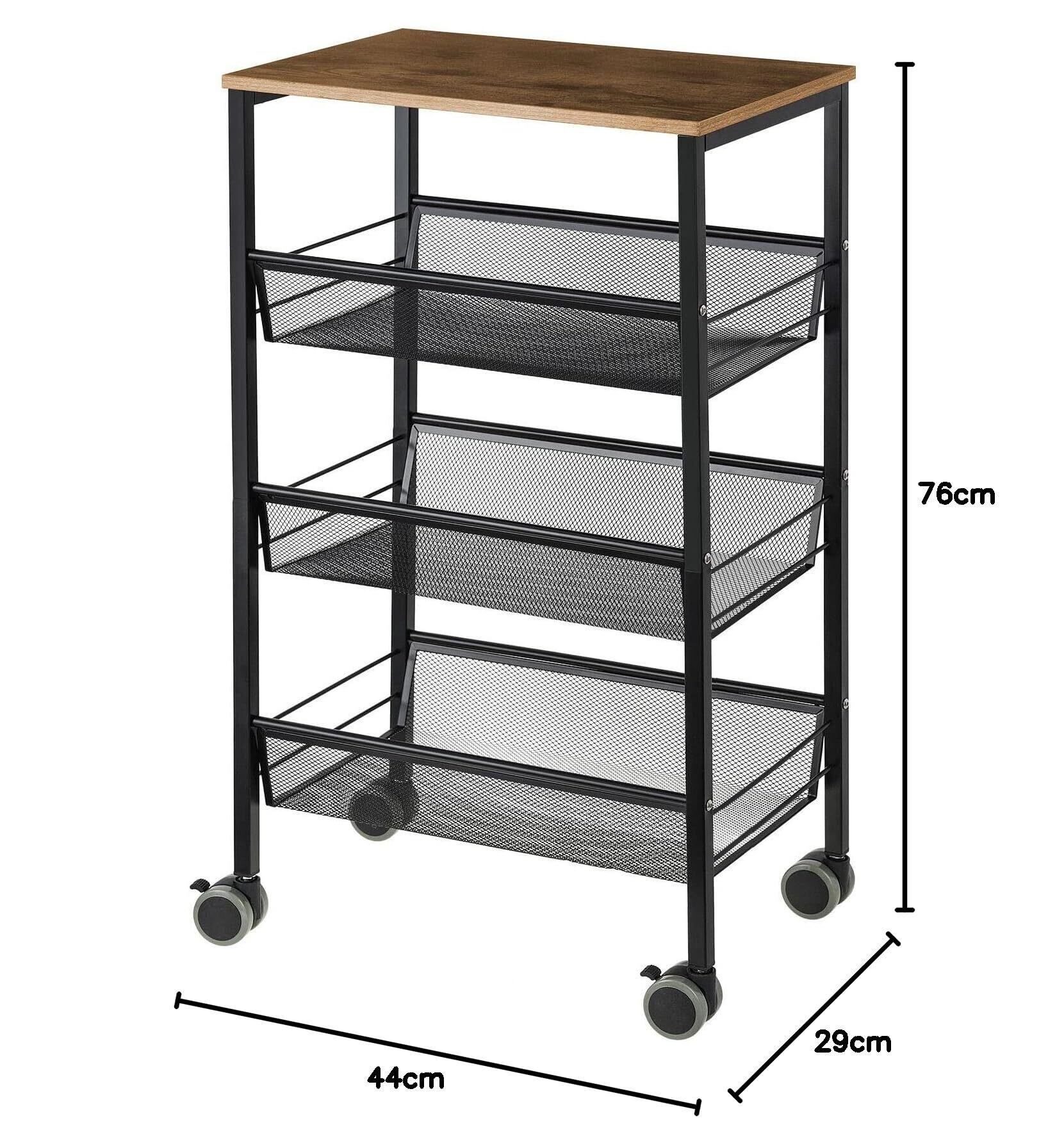 ヴィンテージ風:高級感あるの天板だとお茶作りなどの作業も楽します。4段の棚で充実の収納力上げる。書類や小物、食材のストックなど、キッチン整理用のワゴン収納もできるし、食器や他のキッチン用品もまとめて収納できます。
