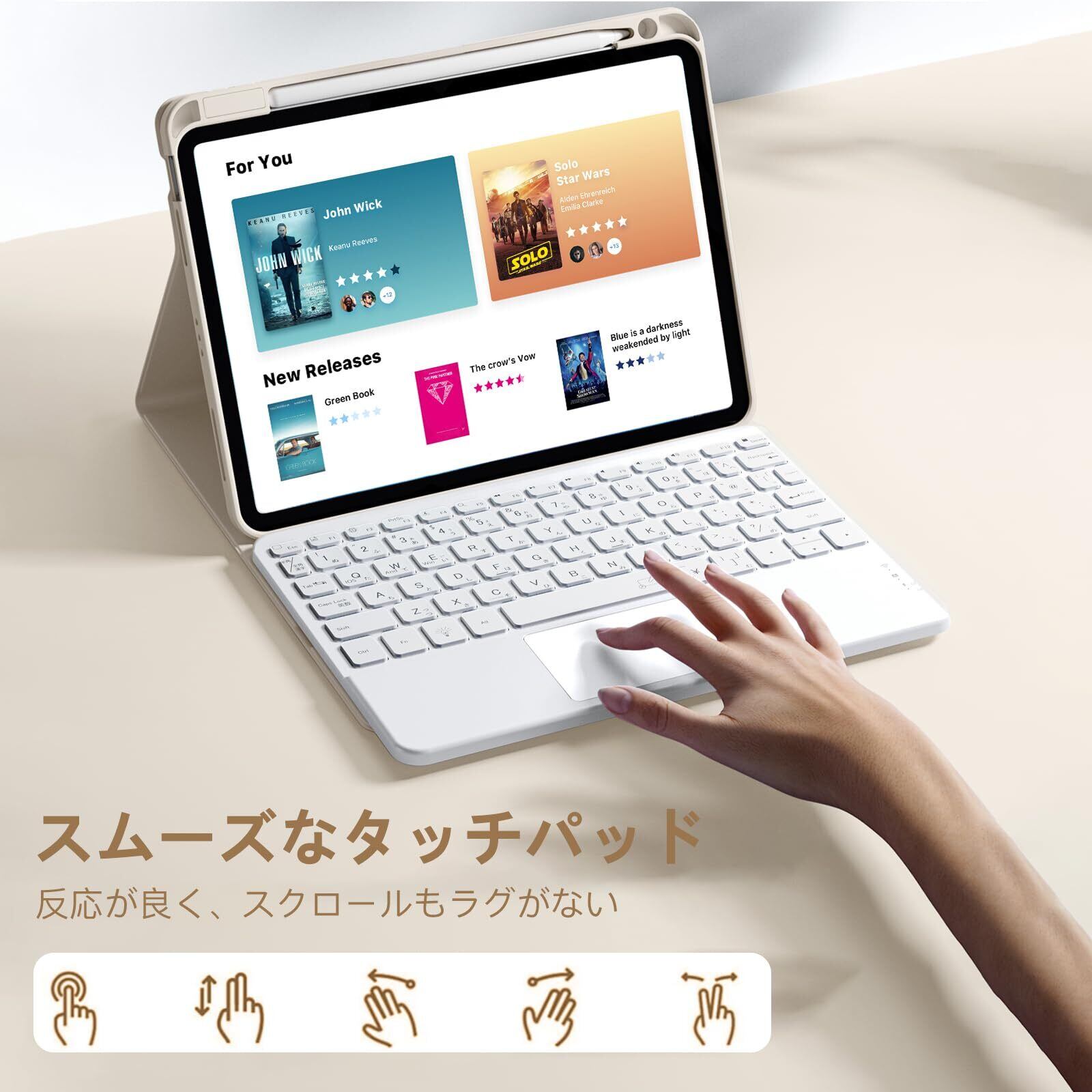 【JIS配列の日本語キーボード】JIS規格準拠の日本語配列で、かな入力や英語入力も対応。12種類のマルチメディアキーを搭載し、音量調整やプレーヤー操作も簡単!トラックパッドが付属し、ジェスチャ操作対応。ドキュメント編集やアプリ操作をスムーズに行えるため、作業効率が大幅アップ。※OS 17.5以上が必要。