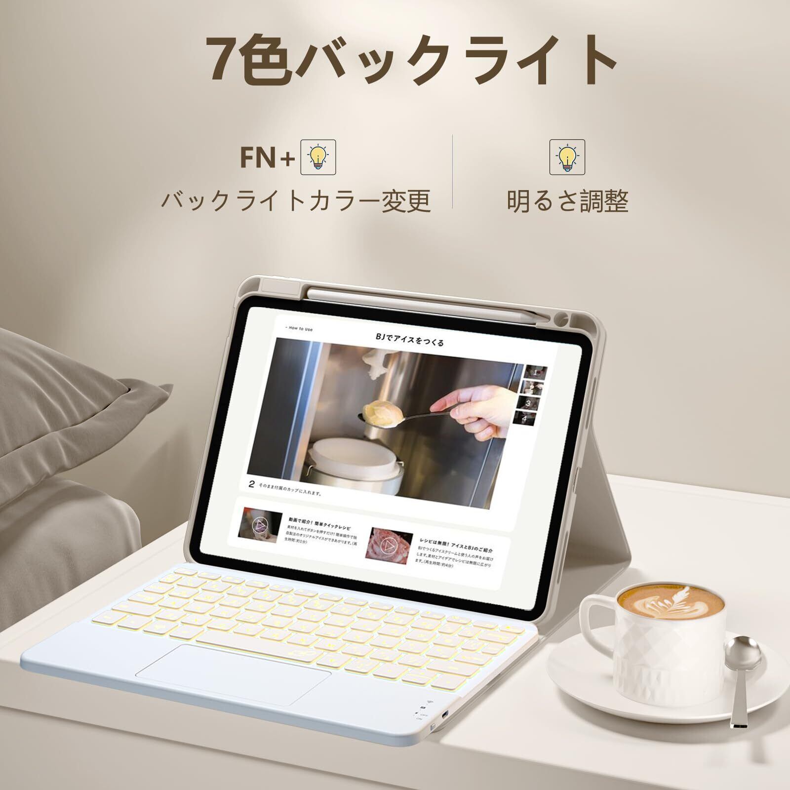 HETHOT iPad用 Air11 キーボード ケース 2025 M3-2024 M2 11インチ タッチパッド付き 日本語JIS配列 7色バックライト カラーキーボード 防汚素材 脱着式 セミシリコン製 450mah大容量バッテリー Apple Pencilホルダー付き Type-C充電 マグネット式 ケース Air 5/4世代対応 多色選択可能