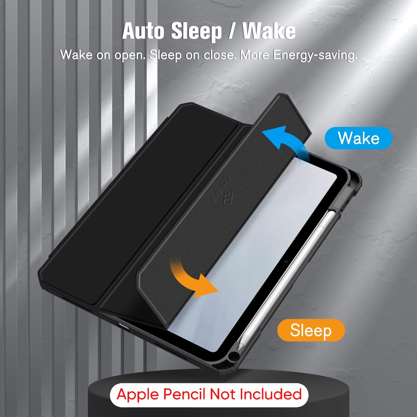 ● スリープ機能でバッテリーを節約! ● スマートスリープ機能を搭載し、iPadの開閉に連動して画面をオンオフできるので、バッテリーの無駄遣いを防ぎます。いつでも快適にエネルギーを節約しながら使用できます。