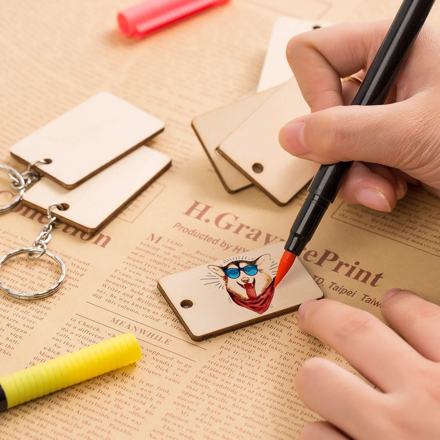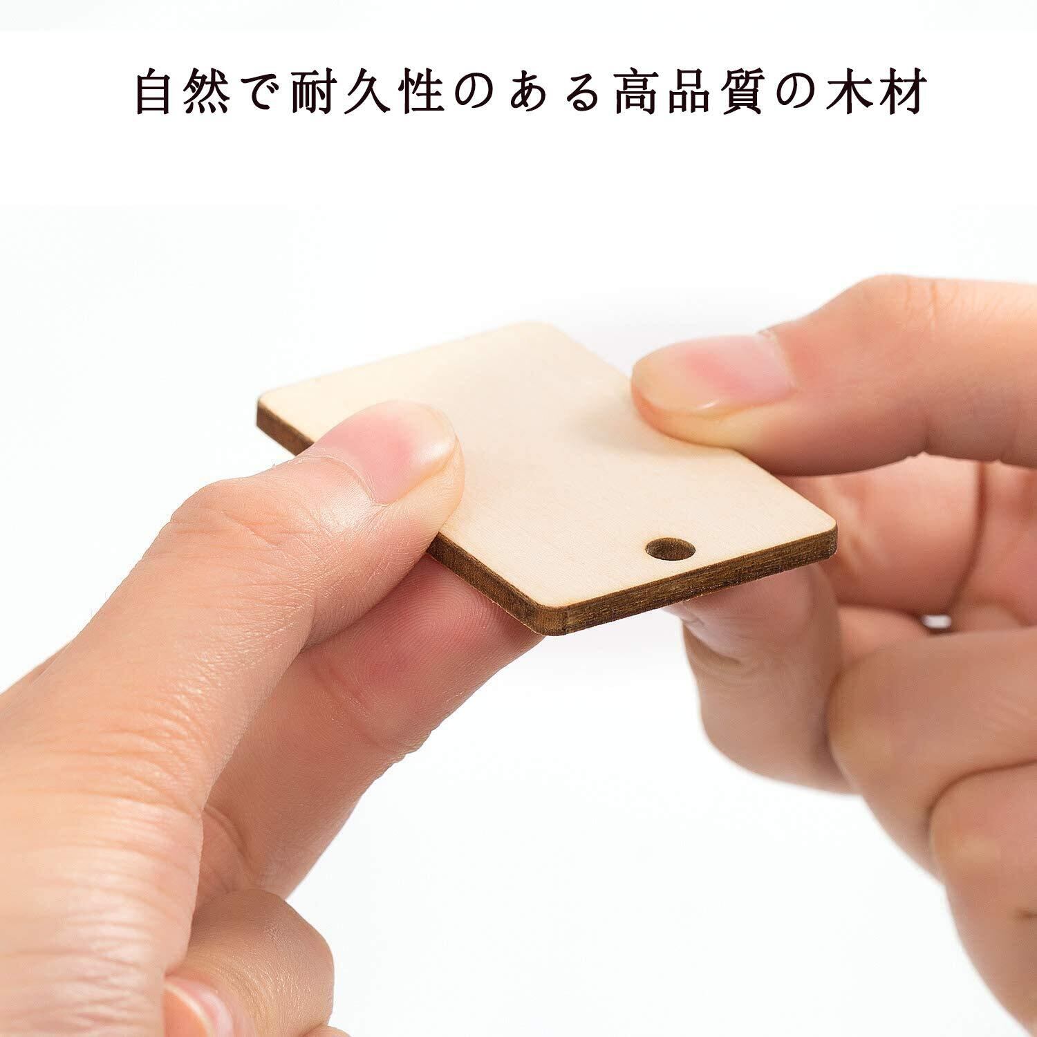 木製スライスYangbaga木製ディスク 80個セット装飾用木材チップ 方形 DIY手作り 多用途 誕生日 結婚式 パーティー DIYホーム装飾 部屋飾り物 工芸品 キーホルダー、麻ロープ付(3.5*5cm)
