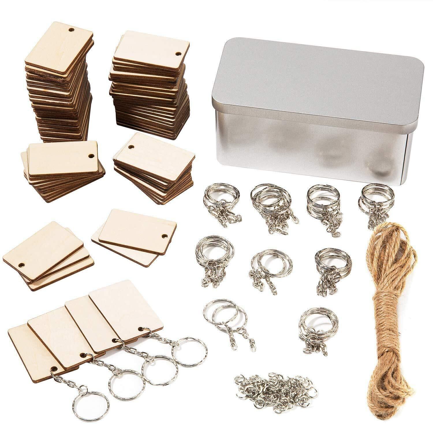 セット:80個の長方形の木材10mの麻ロープと80個のキーチェーンが含まれています。銀の鉄の箱と木の箱をランダムに贈ています。シンプルでスタイリッシュな超人気の手作りキーホルダーです。