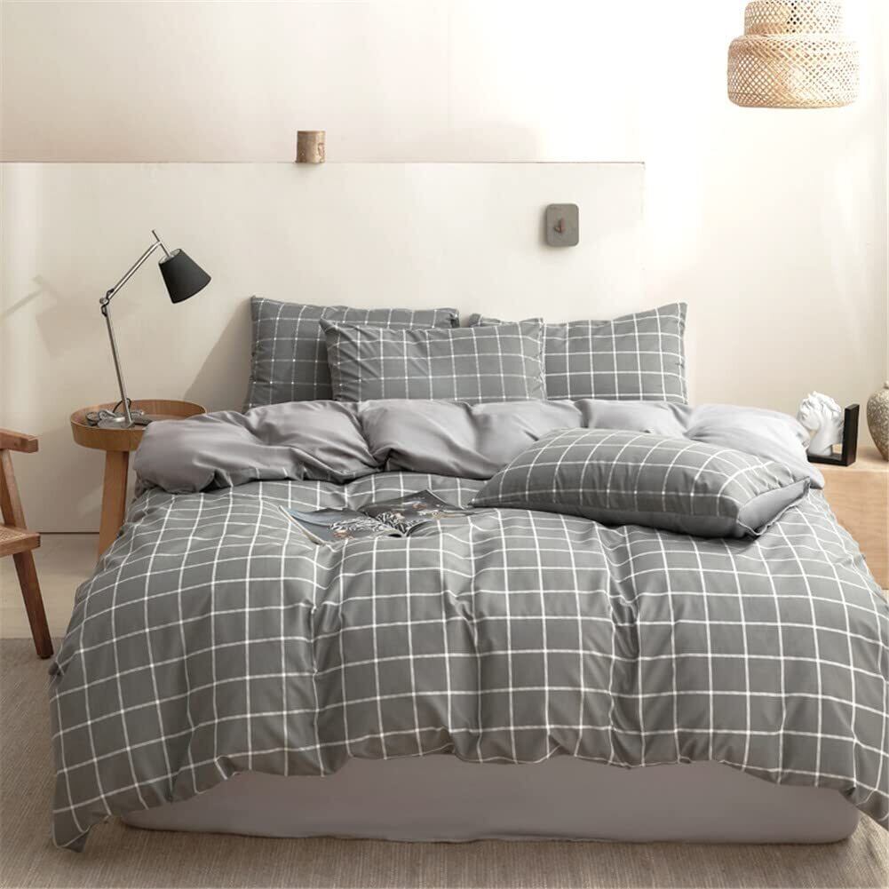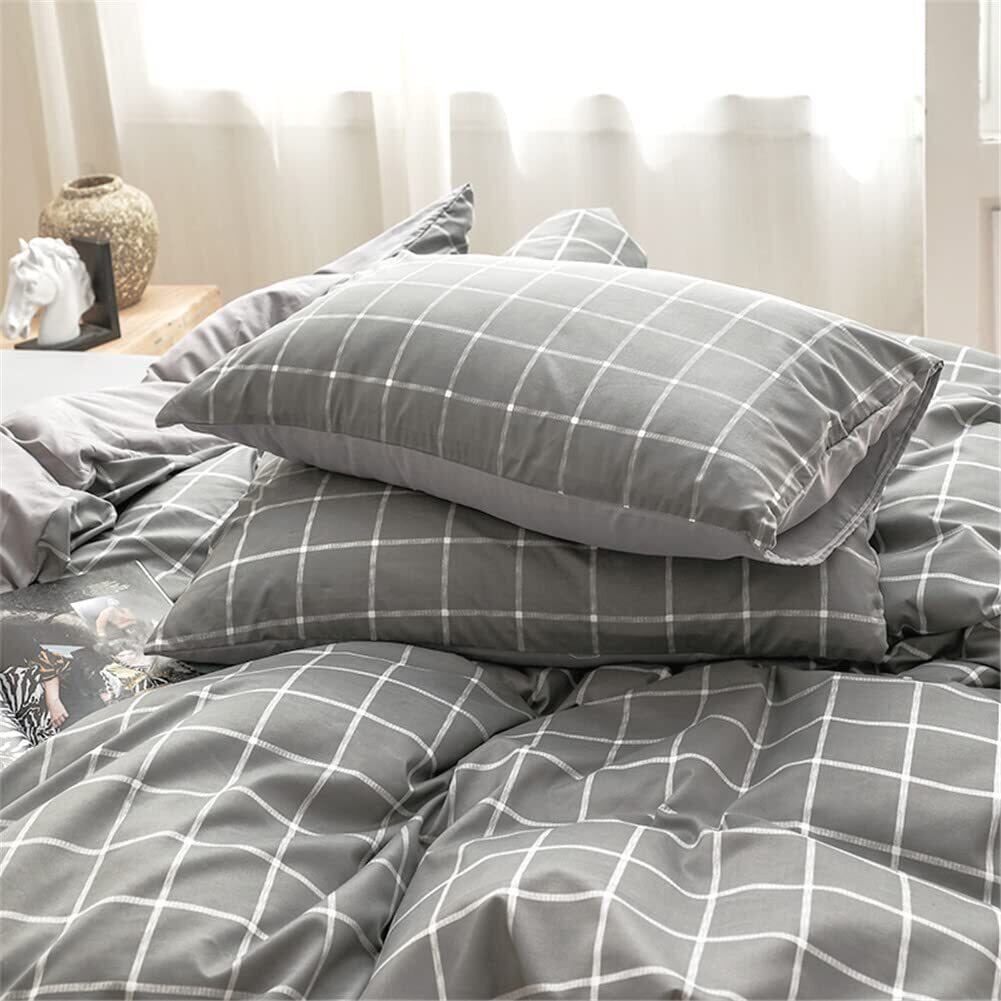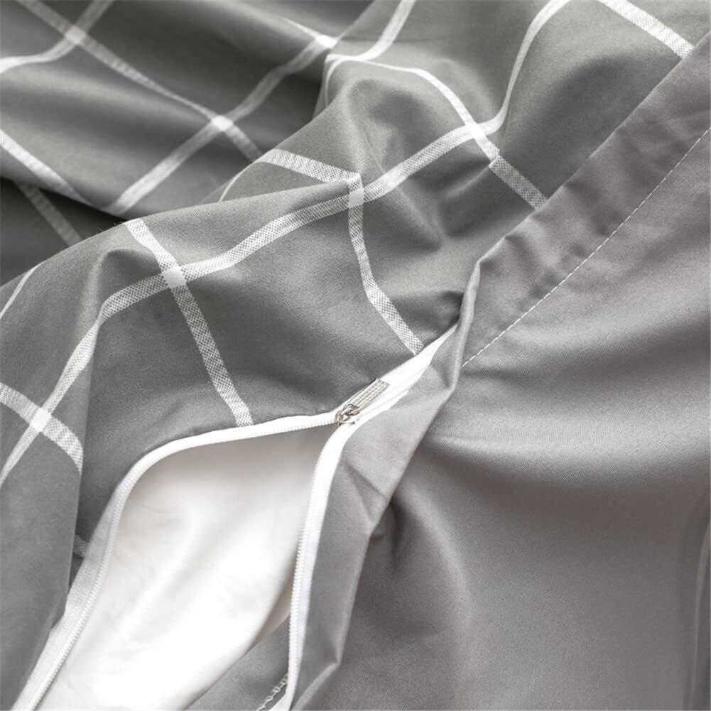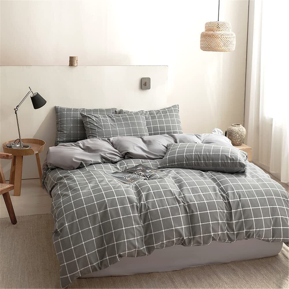NSNLGSGC 布団カバー セミダブル 4点セット 布団かばー ベットカバー ベッド用 グレー チェック 柄 8ヶ所ヒモ付き 洋式・和式兼用 洗い替え速乾タイプ 防ダニ