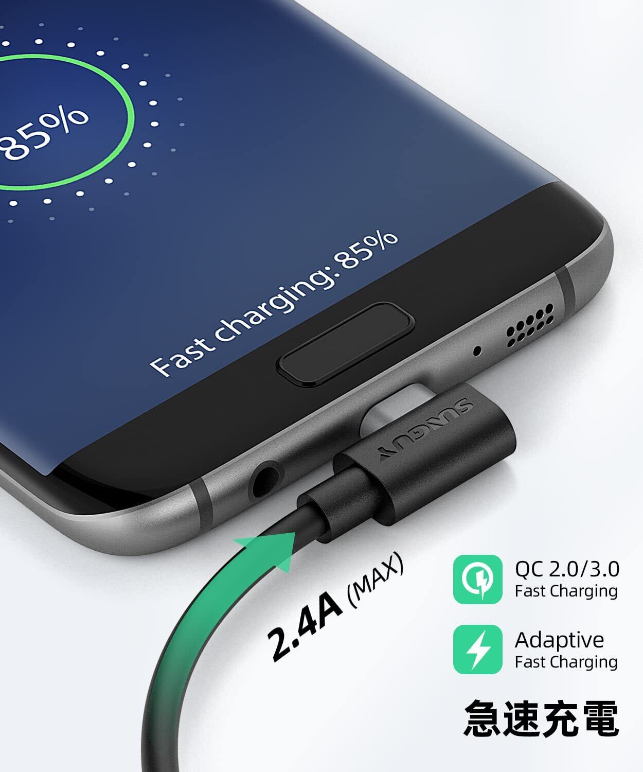 【急速充電・高速データ転送】充電とデータ転送を同期できるケーブルで最大480Mbpsでデータ転送を可能にします。またQuick Charge3.0/2.0に対応、最大18W急速充電(5V/2A、9V/2A、12/1.5A)。普通micro usbより、急速、効率的な充電&データ伝送が可能になります。