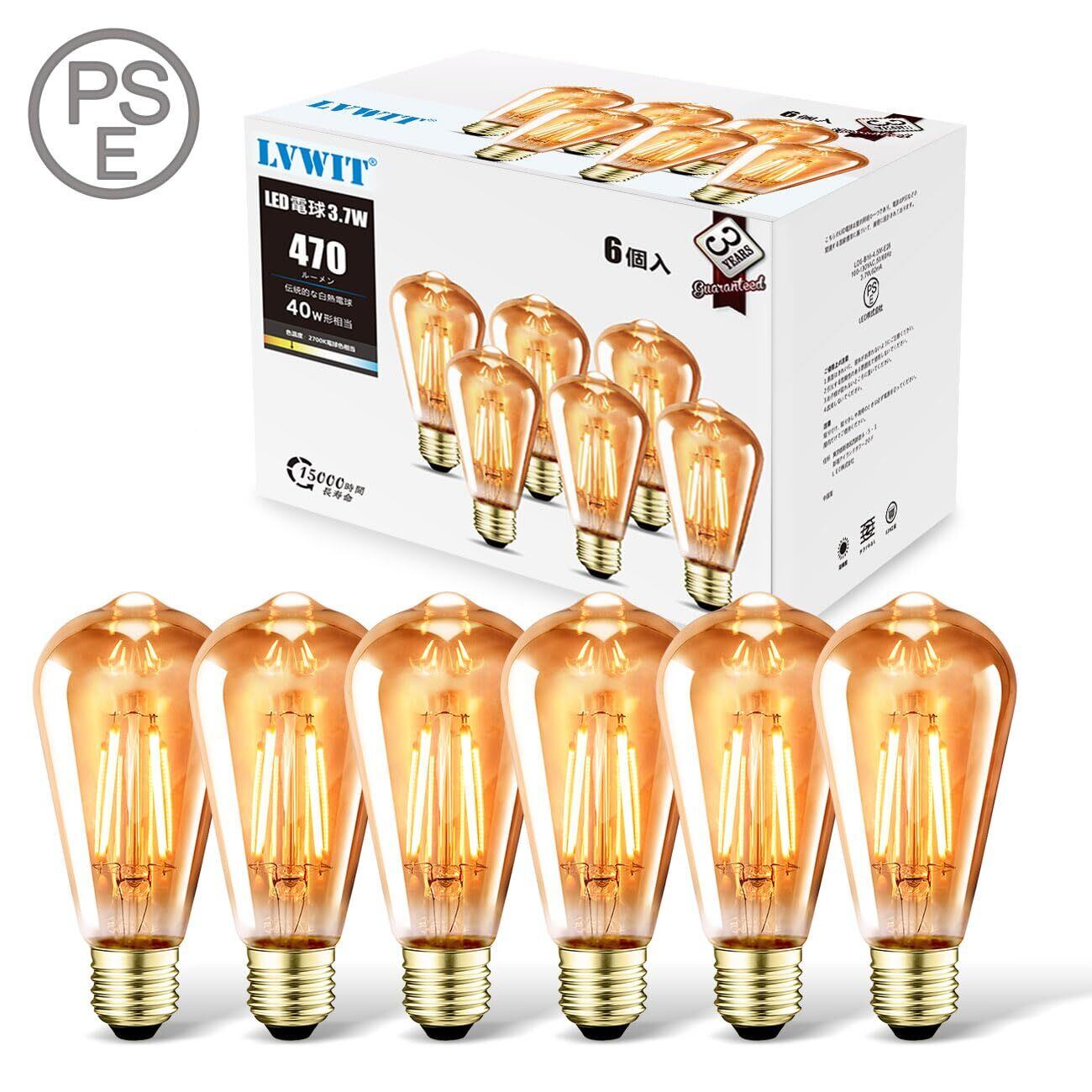LVWIT フィラメント電球 E26口金 LED電球 470LM エジソン電球 (3.7W) 40W形相当 ST64 電球色 2700K 茶色 レトロ電球 調光器非対応 6個入