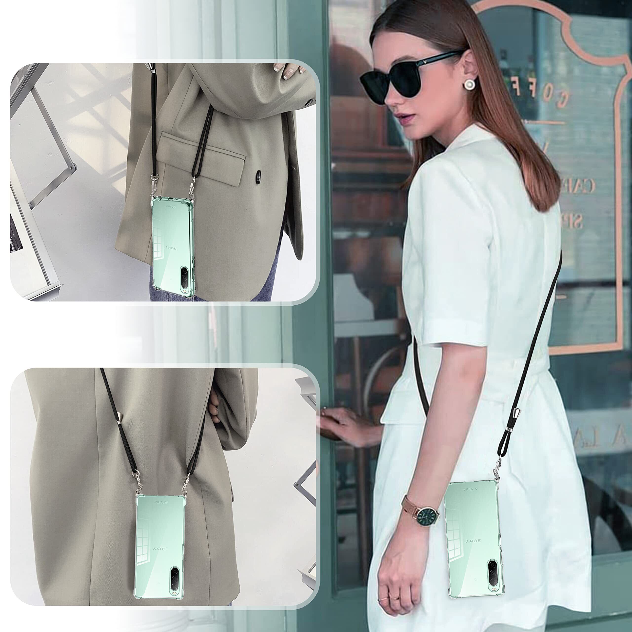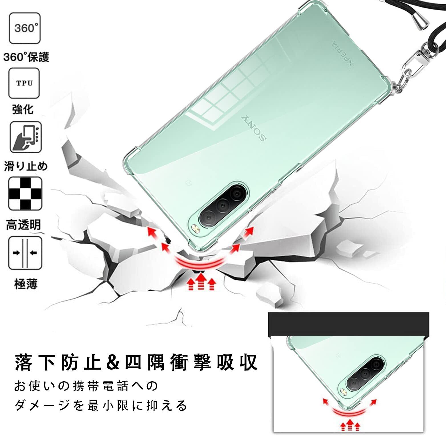 Sony Xperia 10 II ケース クリア ショルダー Xperia 10 II SO-41A スマホケース エクスペリア 10 II カバー 肩掛け 斜めかけ SOV43 縄掛け ショルダー ケース 縄掛け 透明 TPU ストラップ付き 薄型軽量 1.5MM 取り外し可能 電波影響なし 指紋防止 落下防止 Qi急速充電対応 柔軟で変形しない