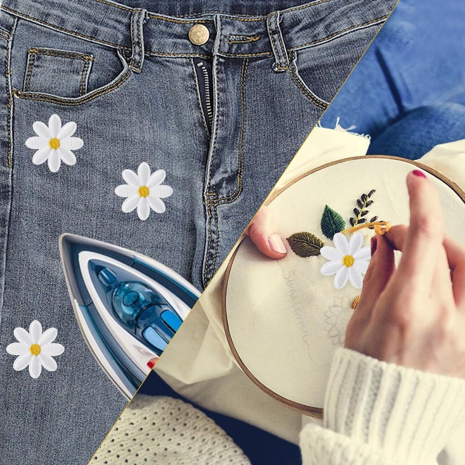 ワッペン アイロン 花 アップリケ 女の子 子供 小さい 刺繍 かわいい アイロンワッペン 女の子 男の子 ミニワッペン 小さい 名札 刺繡ワッペン 貼り付けまた縫い付け用 手芸 裁縫 (ホワイト)