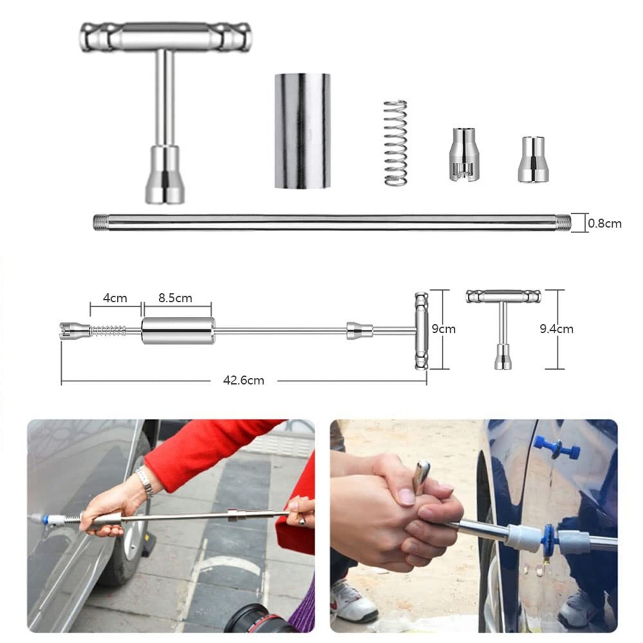 ● あなたの愛車を手軽に修理! ● 「Manelord デントリペアツール」は、車のへこみを簡単に修理するための専門ツールセットです。スライドハンマーとTバーを利用して、効率良く小さなへこみを修復することができます。