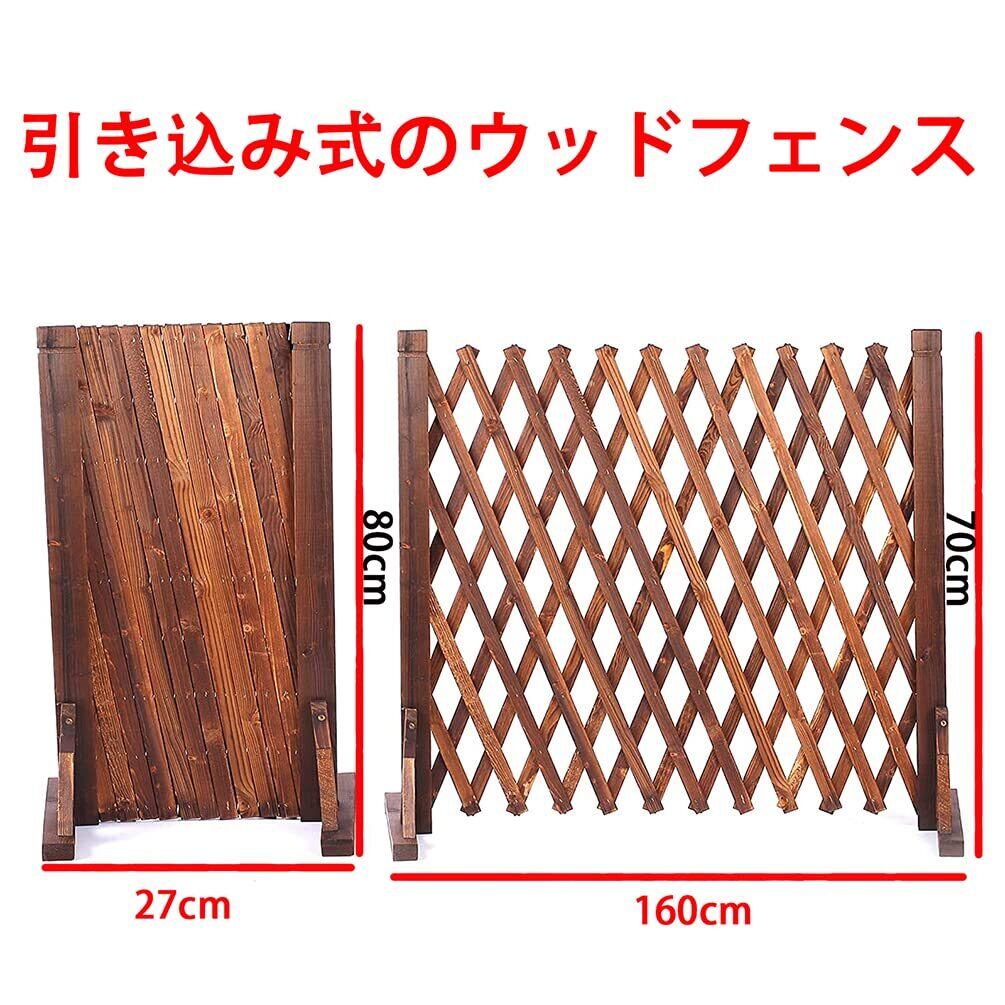 ybaymy 庭の柵 ガーデンフェンス 天然木 ラティスフェンス 垣根 門扉 ゲート 柵 2個入れ 伸縮 折りたたみ式 庭フェンス 木製柵 炭化表面処理 防虫・防食 70x160cm 軽量 コンパクト室内 室外 平地使用