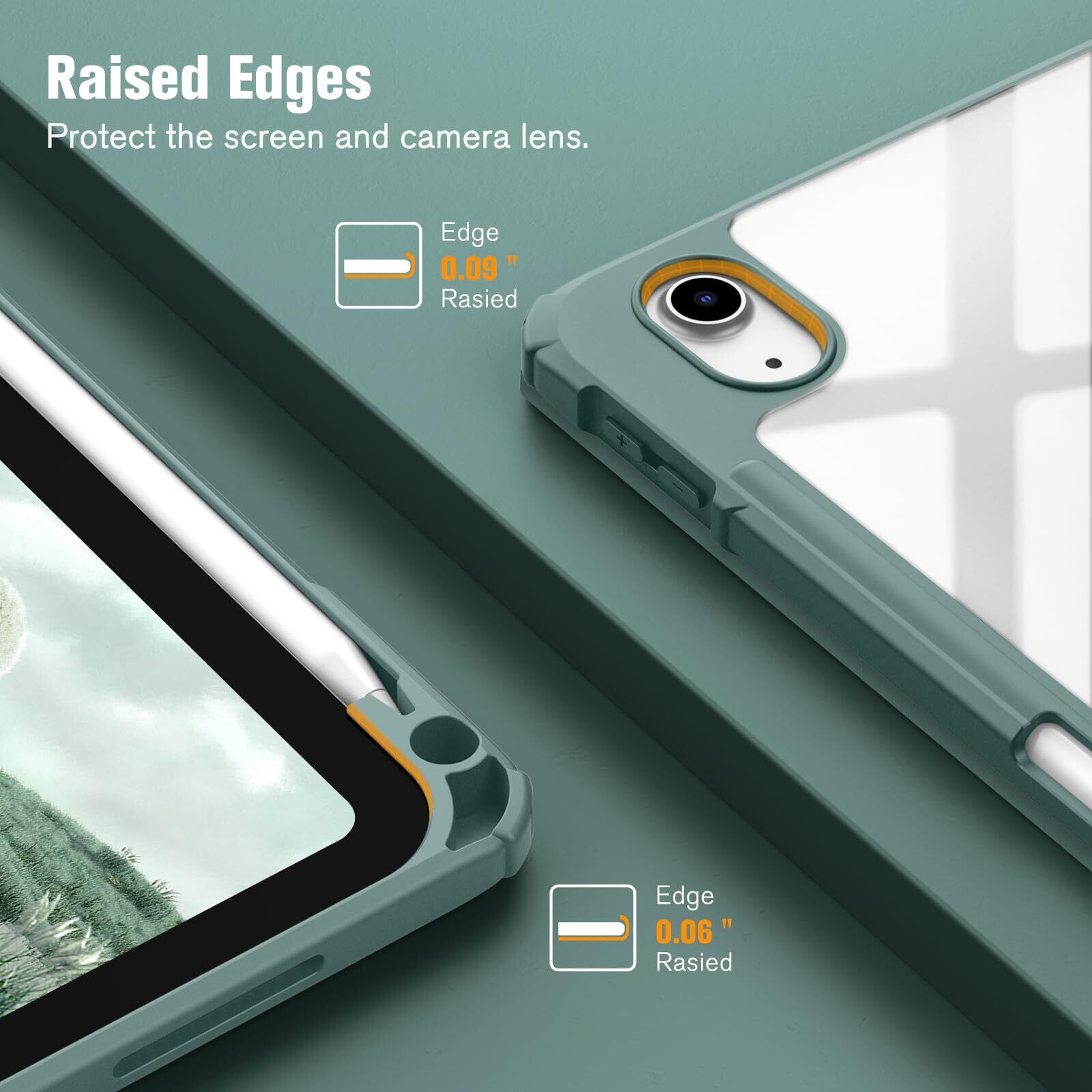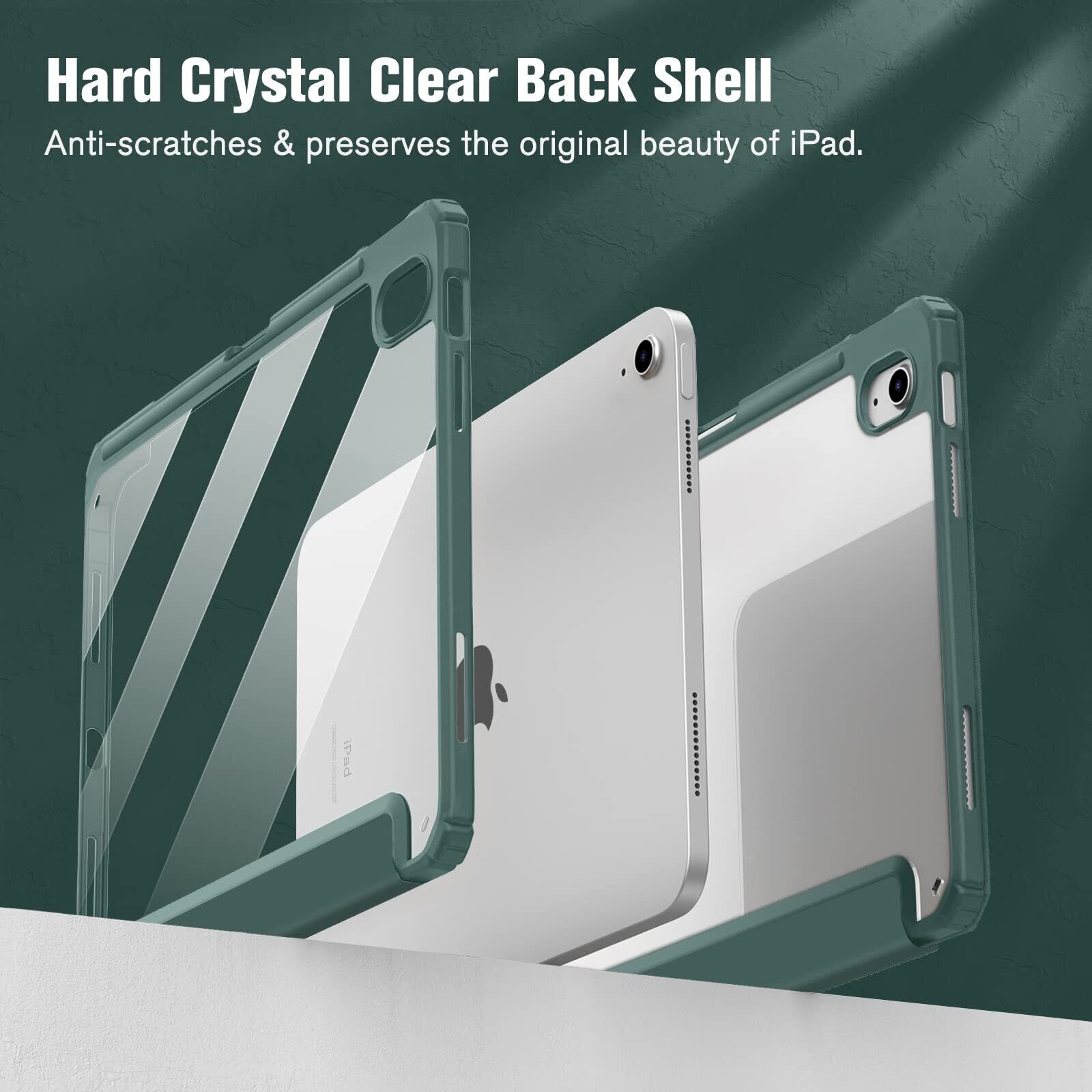 Fintie iPad 第11世代 (A16、2025) / 第10世代 (2022) ケース 11/10.9インチ 透明バックカバー Apple Pencil 収納可能 三つ折スタンド スリープ機能 軽量 薄型 傷つけ防止 PU合成レザー TPU(ミッドナイトグリーン)