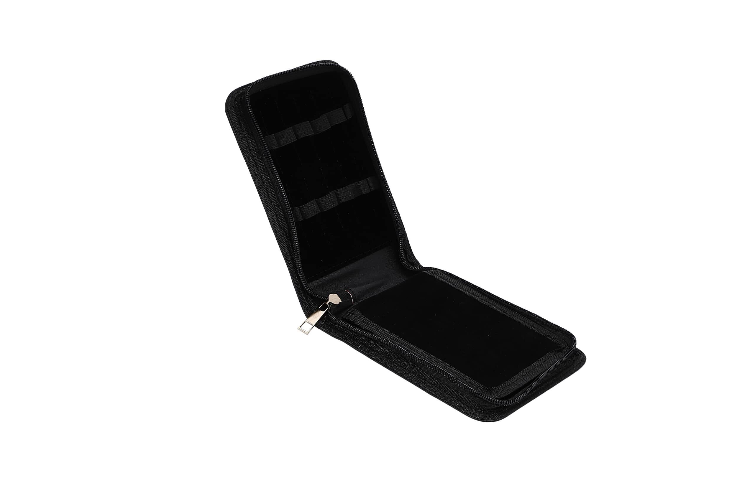 6本と6本をゴム素材のホルダーで収納して、その中間に柔らかな起毛生地が張られた間仕切りがあり、多少の衝撃でもキズが付きにくい構造になっています。