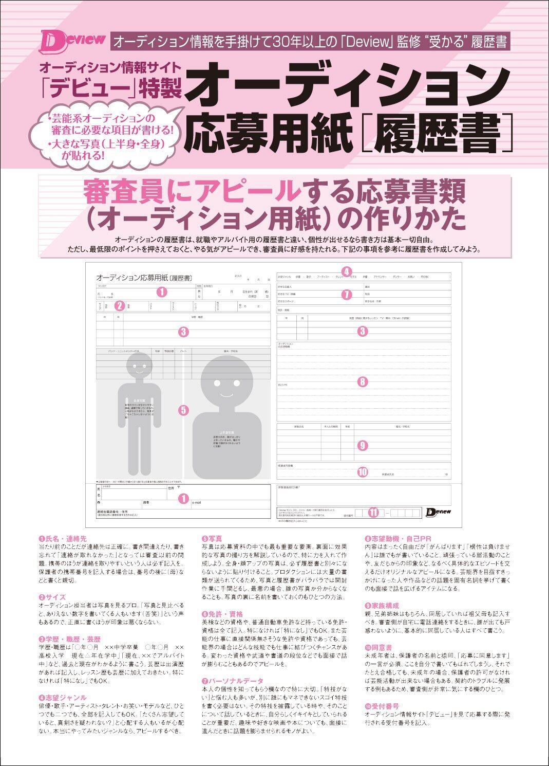 オーディション情報を手掛けて40年の「Deview」監修のオーディション用紙(履歴書)