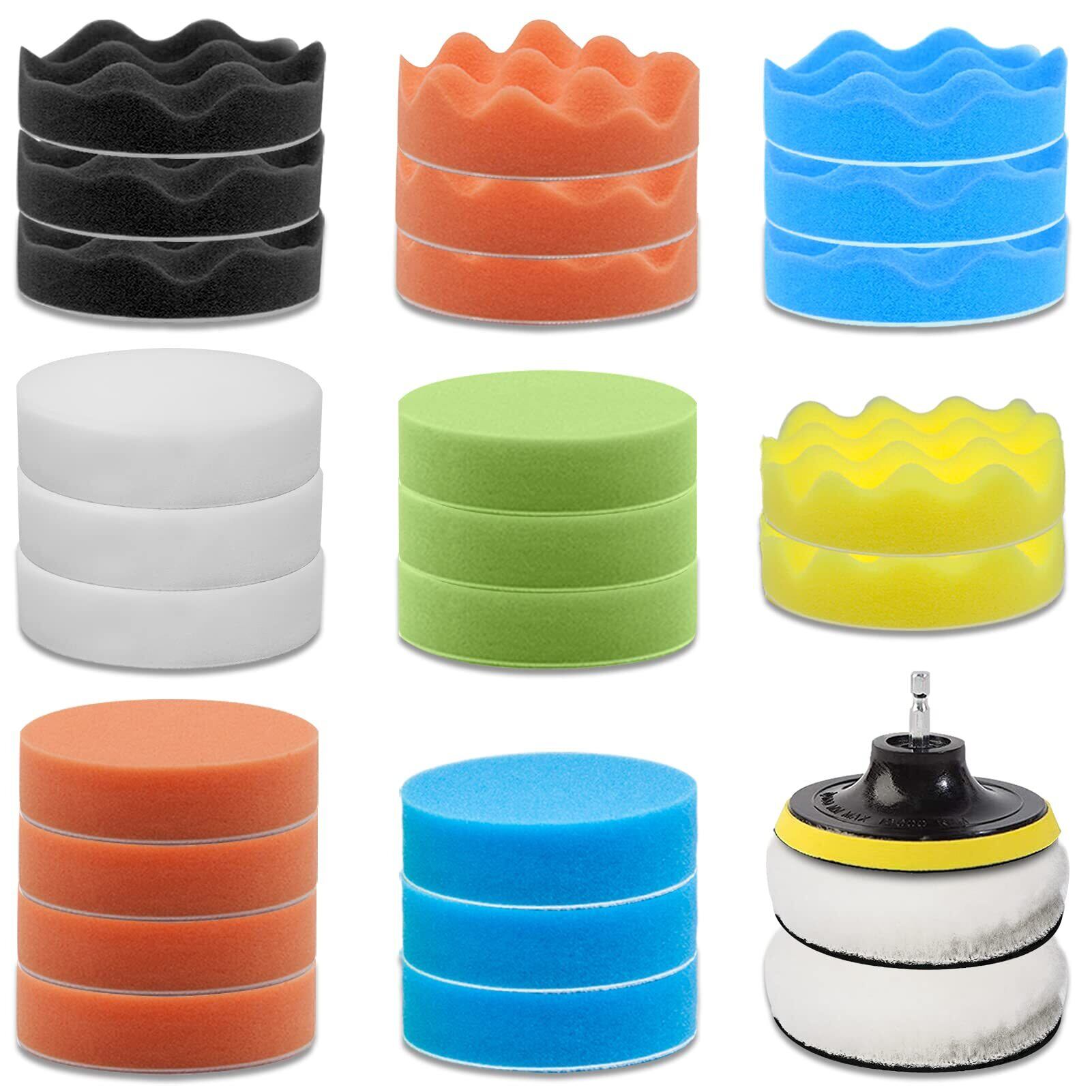 29セット:13 個 平波型ポリッシャーバフ、11 個 型ポリッシャーバフ、2 個 ウールパッド、マジック式パット*1、六角轴ビット*1 円形の軸 ドリル用アダプター*1個、六角ビットのドリルとポリッシャーに適用さる掃除用セットです