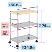 ● 便利なキャスター付き! ● 移動に便利なキャスターを装備しており、自由に移動させることが可能です。キッチンやリビングでの使い方を自在に変えられ、必要に応じた配置替えも簡単に行えます。