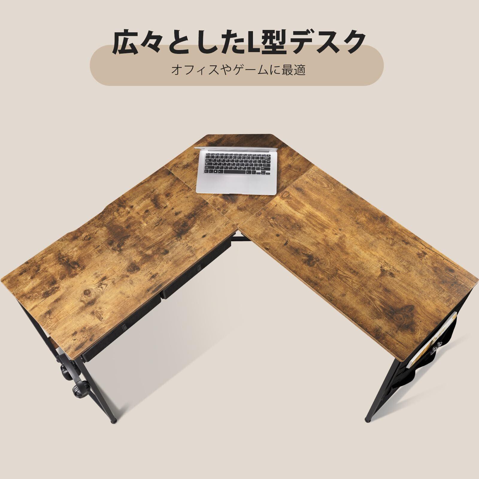 ● 在宅勤務や勉強に最適なL字型デスク! ● 「YeTom l字デスク机」は、125cm x 125cmの広々とした作業スペースを提供し、快適に学ぶ・働く環境を実現します。ビンテージデザインがインテリアにも馴染み、スタイリッシュな空間を演出します!