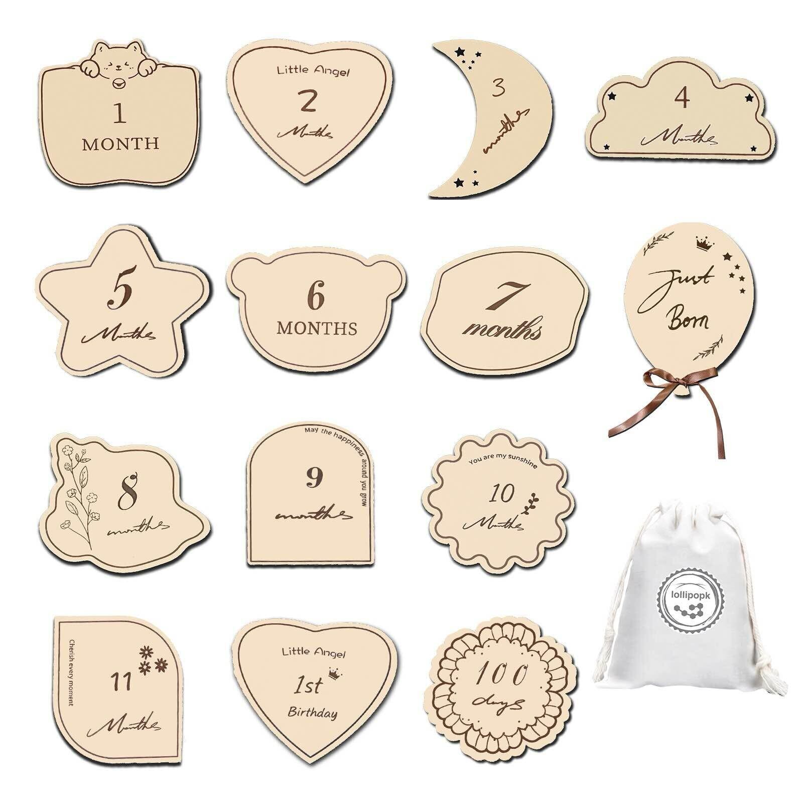 lollipopk 月齢フォト 天然木製 レターバナー マンスリーカード ニューボーンフォト 記念日フォト 成長記録 出産祝い 撮影用 寝相アート 月齢フォトグッズ ベビー用品 新生児 赤ちゃん (14)